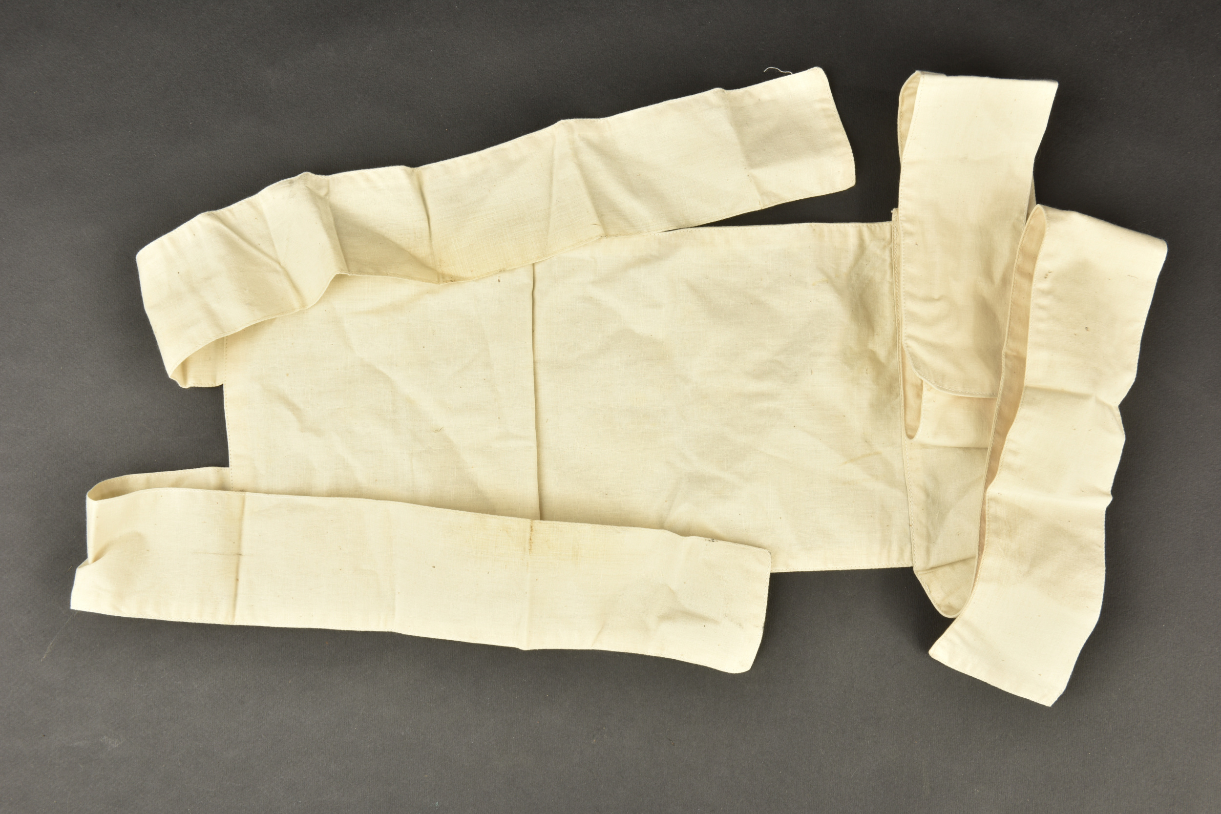 Coiffe d’infirmière canadienne. En tissu coton blanc. Etiquette marquée Gift of Canadian Red Cross Society. A noter une certaine usure et patine de la pièce, ainsi que des tâches. Etat... en savoir plus
