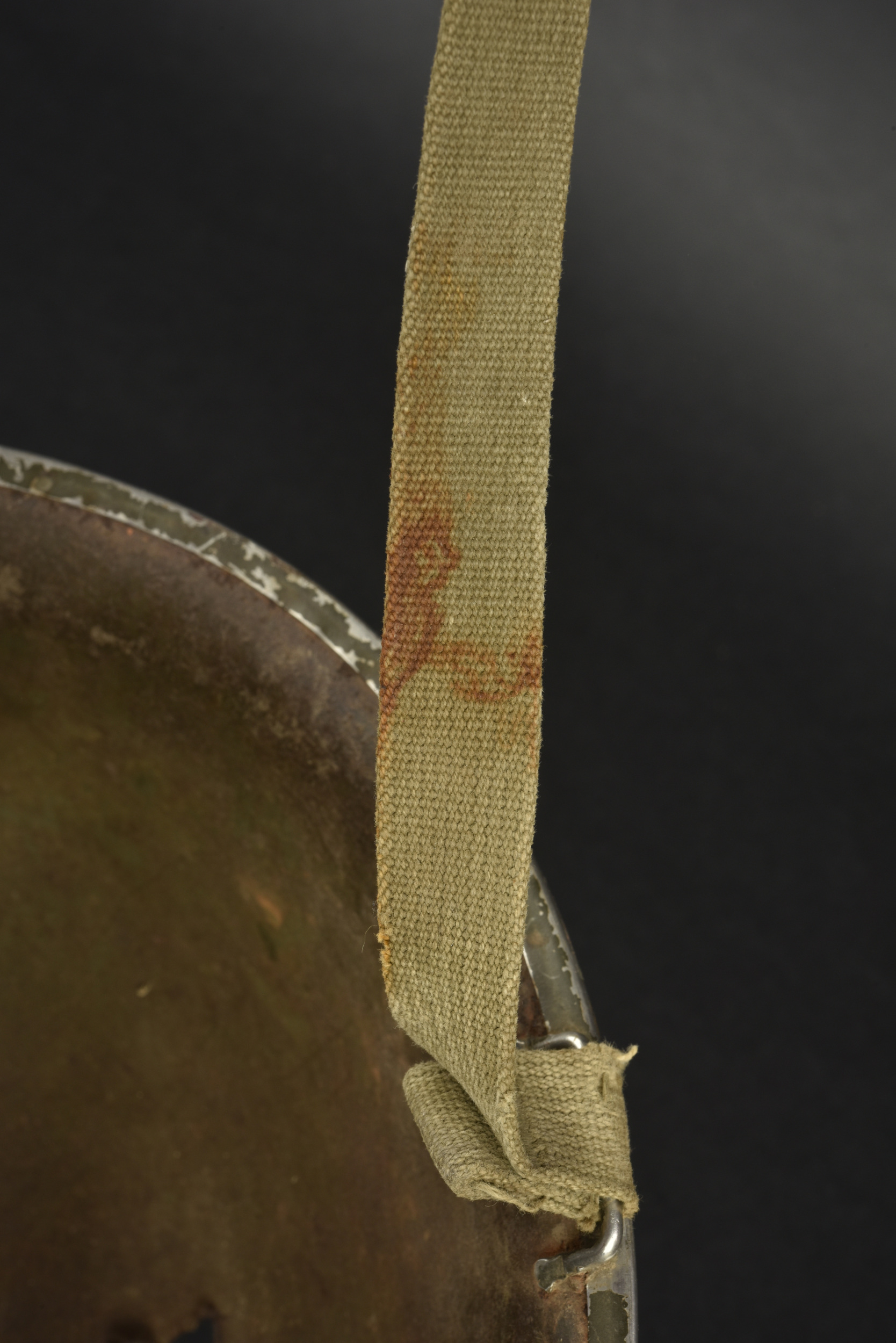 Détails de la vente >Coque de casque US à impact. Coque de casque USM1. Fermeture du jonc à l’avant. Numéro de lot 779A, correspondant à une fabrication de janvier 1944. Pontets fixes, les jugulaires sont... en savoir plus