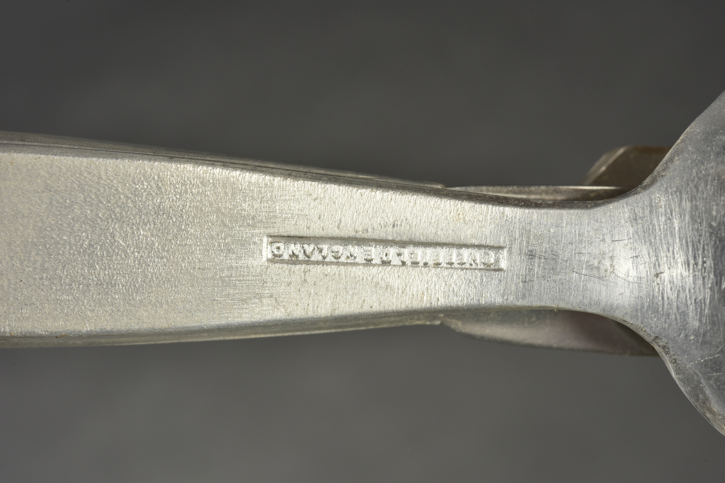 Détails de la vente >Couverts britannique. Cuillère, couteau et fourchette emboitables. Bien daté 1944 avec broad arrow. A noter une certaine usure et patine des pièces. Etat II+.