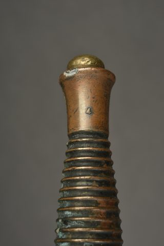 Détails de la vente >Dague type Fairbairnsykes. Poignées annelée en métal. Pommeau portant le numéro de moule 4. Garde sans marquages. Lame type baïonnette clou, visiblement une modification d’époque.... en savoir plus