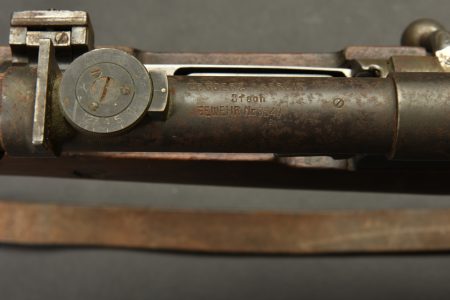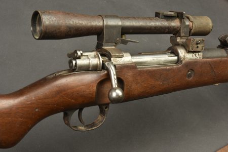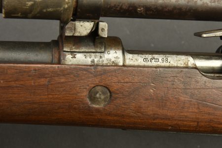 Fusil à répétition G98 avec lunette. Les parties métalliques présentes une certaine oxydation. Baguette de nettoyage complète. Numéro 8904G. Daté 1915. Le marquage fabricant est non... en savoir plus