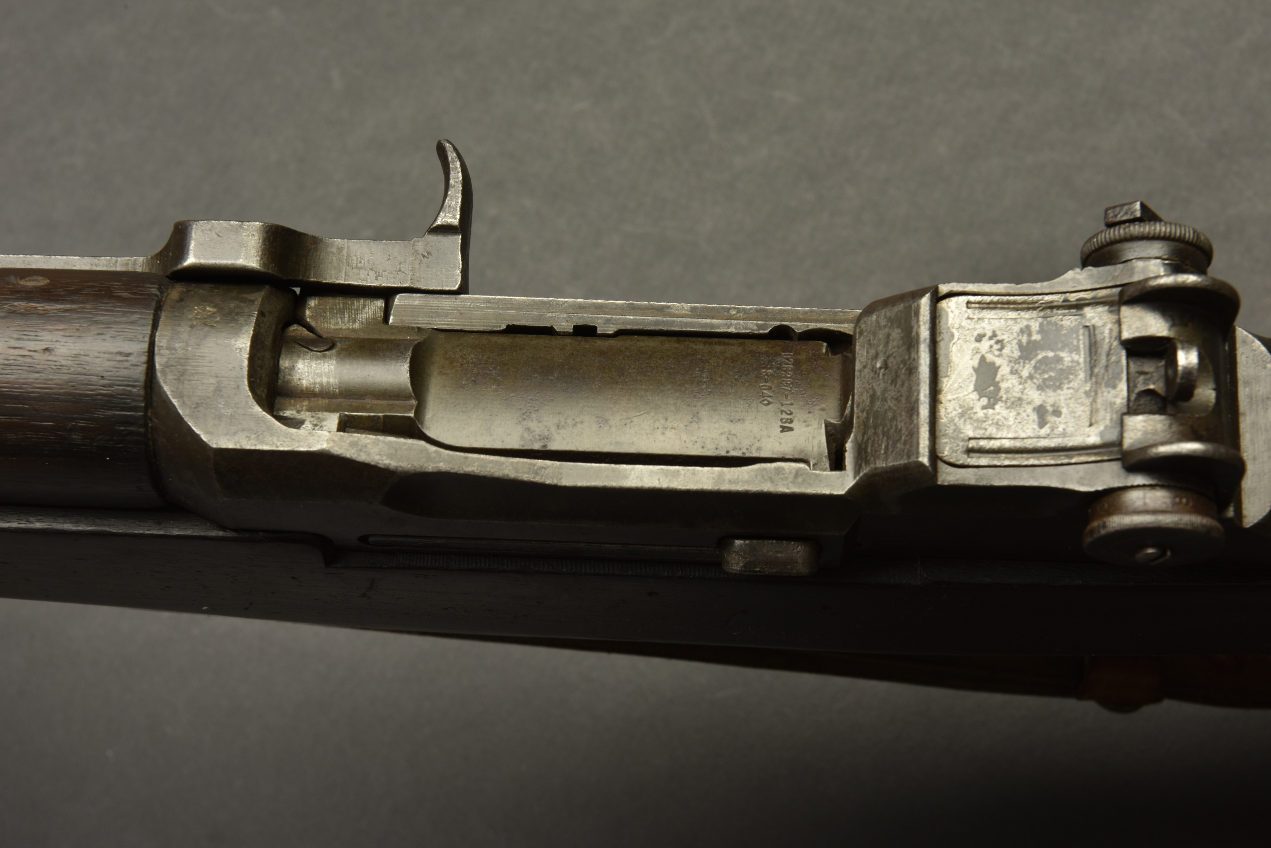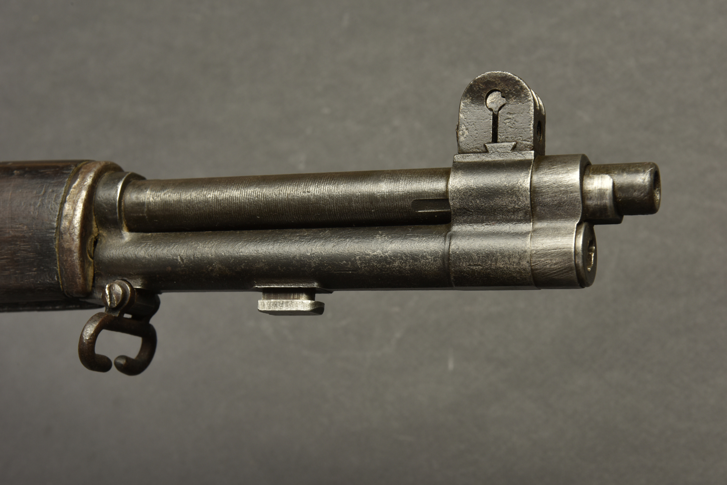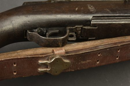 Fusil Garand M1. Garnitures en métal, présentant quelques traces d’oxydation. Culasse rendue mobile par une neutralisation +. Fabrication Springfield Armory, numéro 2427117. Belle crosse en bois, lettre P visible au niveau de la poignée. Culasse rendue mobile par une neutralisation +. Belle bretelle en cuir marron, complète. Catégorie C9. Arme neutralisée aux nouvelles normes européenne par le Banc d’épreuve de Saint Etienne. Cette arme doit être déclarée avec Cerfa et certificat médical de moins de 1 mois ou licence de tir tamponnée ou permis de chasse valide (art R312-56). La délivrance de l’arme n’aura lieu qu’après consultation du fichier Finadia. L’inscription de l’acheteur sur ce fichier entrainera automatiquement la nullité de la vente. A noter une certaine usure et patine de la pièce. Etat II+.
