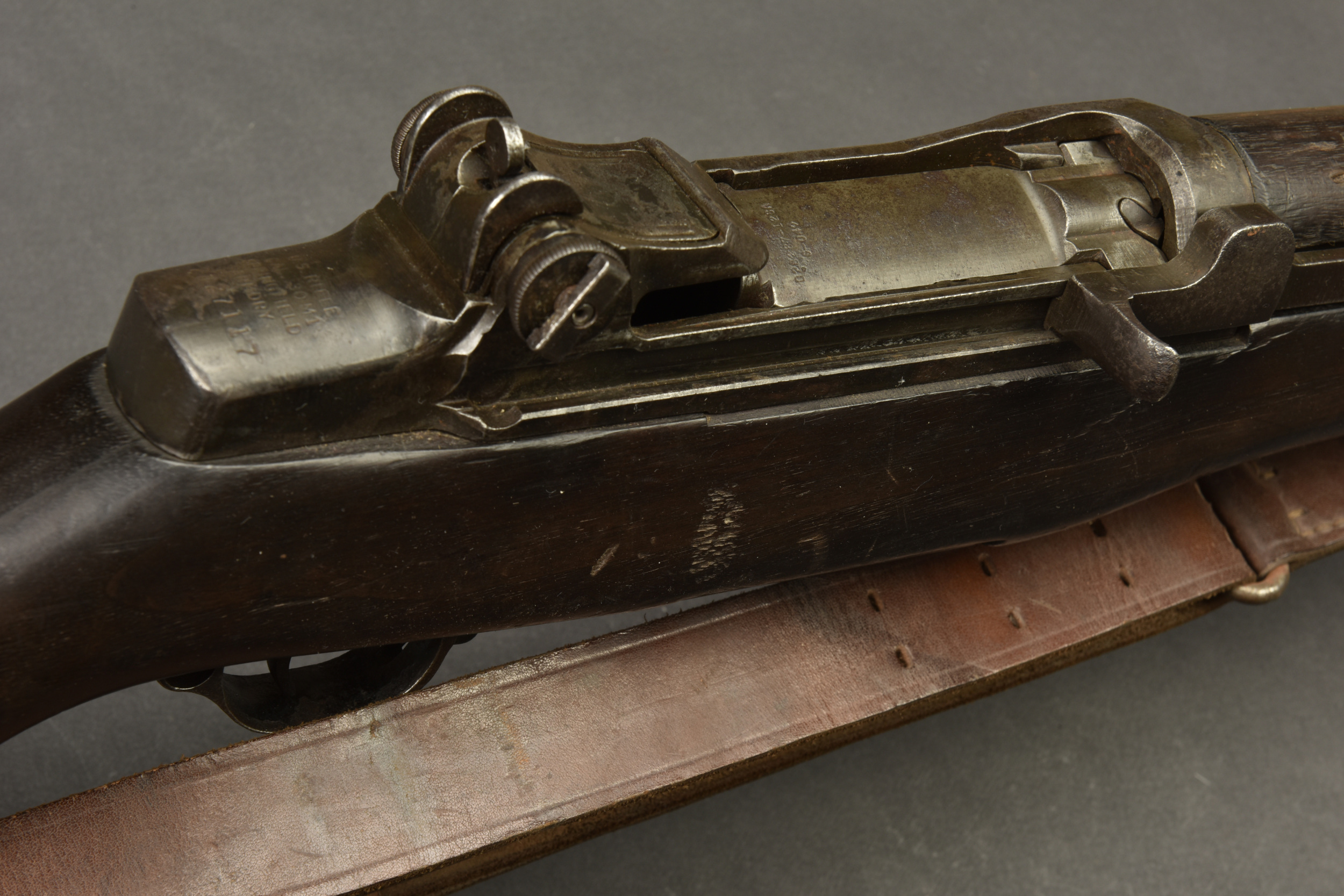 Détails de la vente >Fusil Garand M1. Garnitures en métal, présentant quelques traces d’oxydation. Culasse rendue mobile par une neutralisation +. Fabrication Springfield Armory, numéro 2427117. Belle crosse... en savoir plus