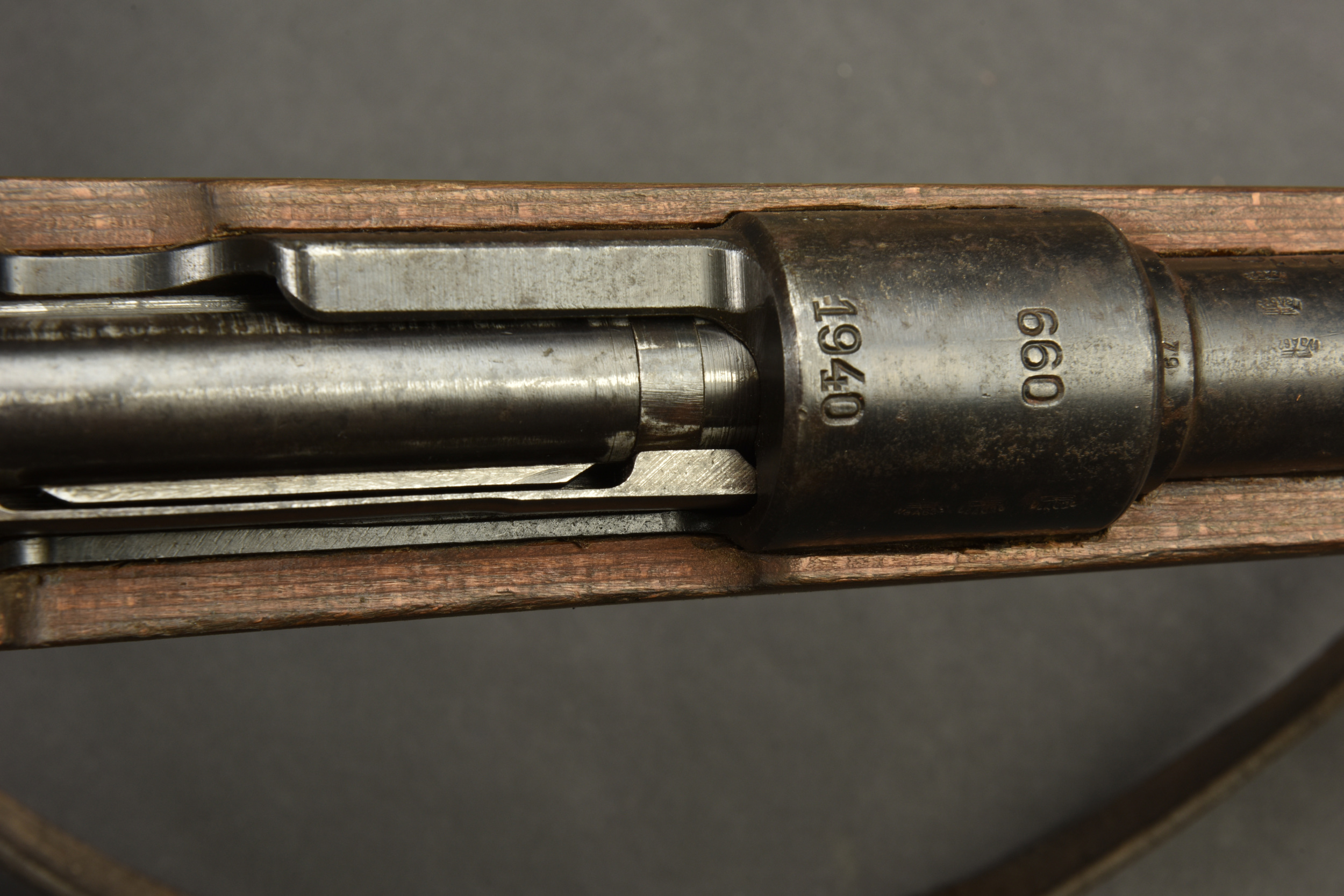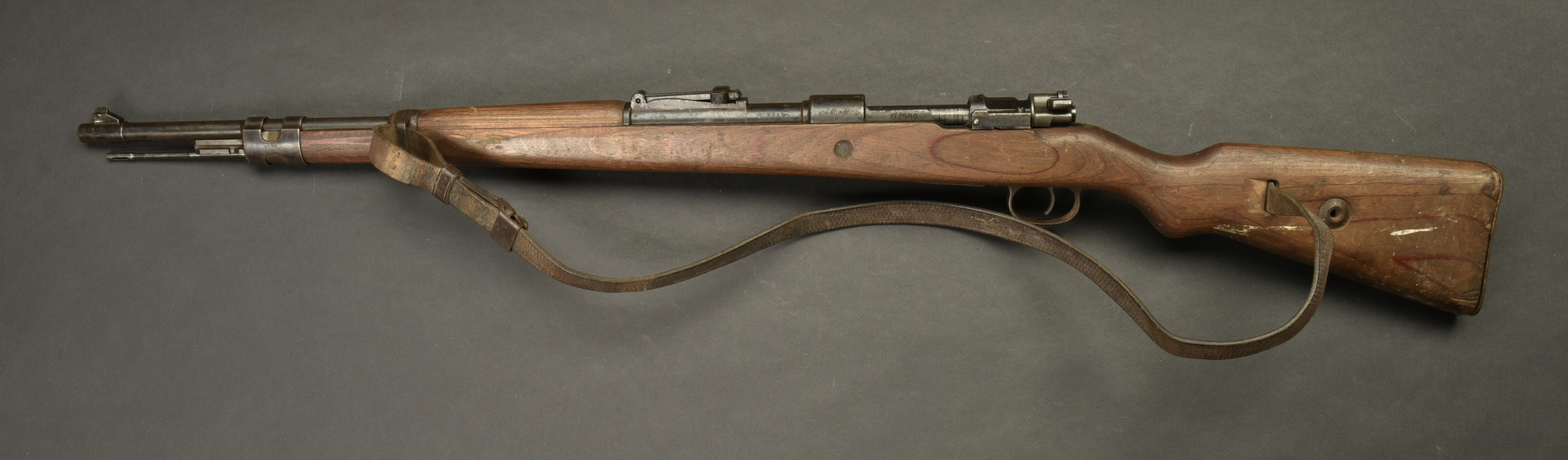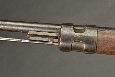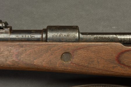Fusil G29/40. Garnitures métalliques présentant une légère oxydation. Marquages G29/40. Numéro 8197B. L’arme n’est pas au même numéro. Baguette de nettoyage complète. Fabrication 660 1940, correspondant à Steyr Daimler. Belle crosse en bois avec son marquage WAA. Bretelle en cuir complète. Culasse mobile grâce à une neutralisation +. Catégorie C9. Arme neutralisée aux nouvelles normes européenne par le Banc d’épreuve de Saint Etienne. Cette arme doit être déclarée avec Cerfa et certificat médical de moins de 1 mois ou licence de tir tamponnée ou permis de chasse valide (art R312-56). La délivrance de l’arme n’aura lieu qu’après consultation du fichier Finadia. L’inscription de l’acheteur sur ce fichier entrainera automatiquement la nullité de la vente. A noter une certaine usure et patine de la pièce. Etat II+. Il semblerait qu’une majorité de ces armes était affectée à la marine et à l’aviation.