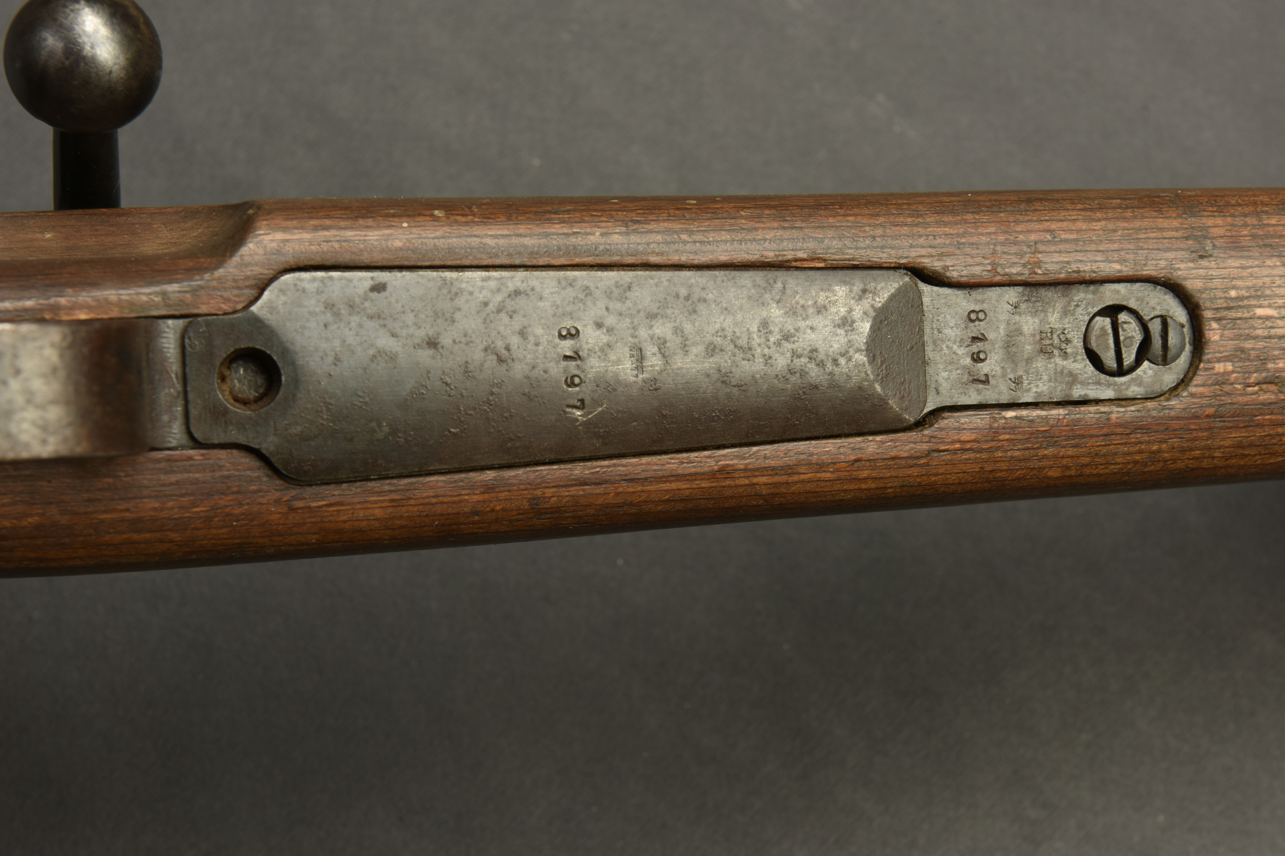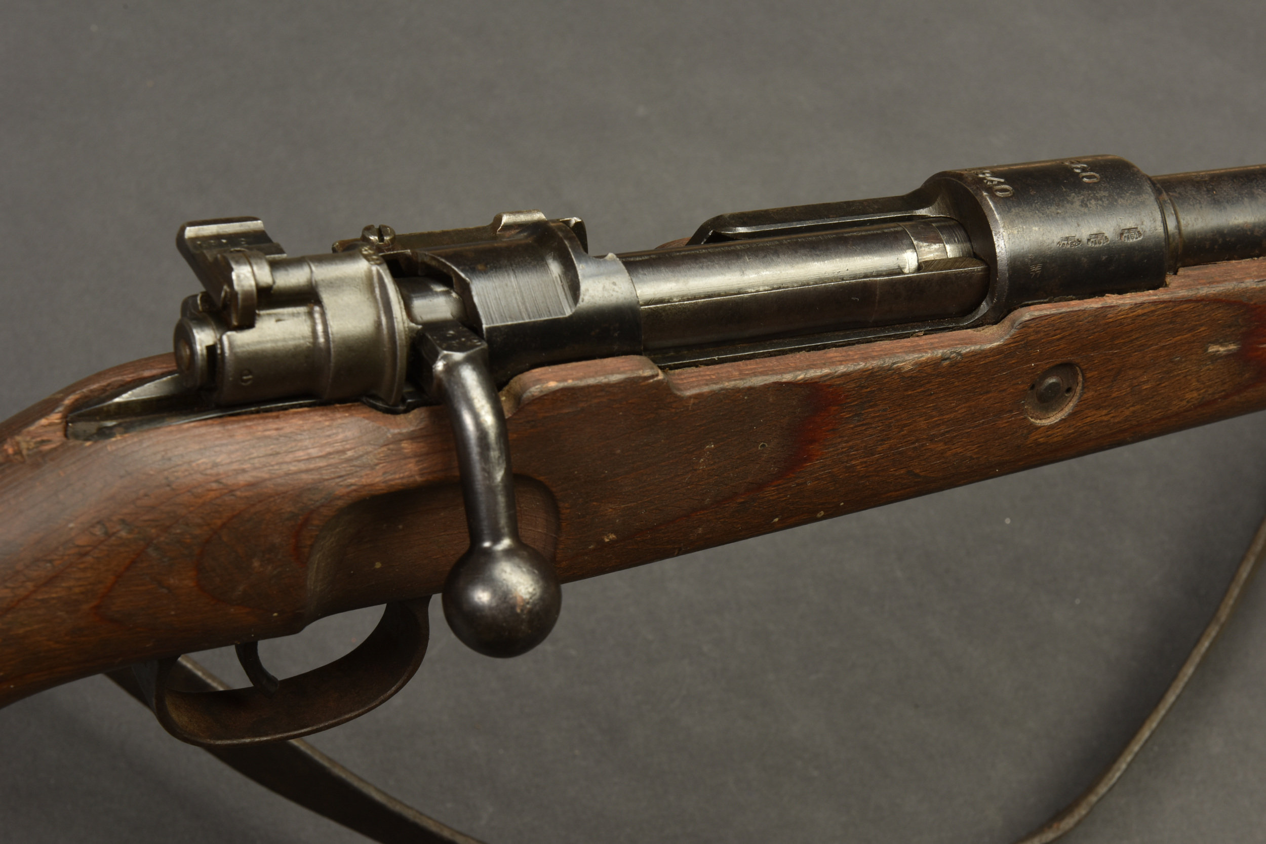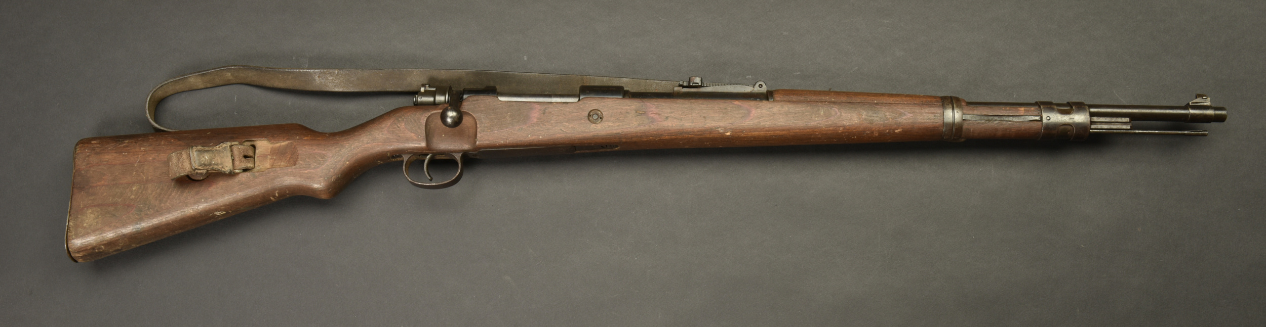 Fusil G29/40. Garnitures métalliques présentant une légère oxydation. Marquages G29/40. Numéro 8197B. L’arme n’est pas au même numéro. Baguette de nettoyage complète. Fabrication 660 1940, correspondant à Steyr Daimler. Belle crosse en bois avec son marquage WAA. Bretelle en cuir complète. Culasse mobile grâce à une neutralisation +. Catégorie C9. Arme neutralisée aux nouvelles normes européenne par le Banc d’épreuve de Saint Etienne. Cette arme doit être déclarée avec Cerfa et certificat médical de moins de 1 mois ou licence de tir tamponnée ou permis de chasse valide (art R312-56). La délivrance de l’arme n’aura lieu qu’après consultation du fichier Finadia. L’inscription de l’acheteur sur ce fichier entrainera automatiquement la nullité de la vente. A noter une certaine usure et patine de la pièce. Etat II+. Il semblerait qu’une majorité de ces armes était affectée à la marine et à l’aviation.