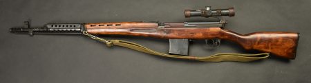 Fusil semi automatique SVT 40 Tokarev. Garnitures métalliques en couleur d’origine à 90%. Baguette de nettoyage complète. Chargeur et culasse bloqués par la neutralisation. Daté 1941.... en savoir plus