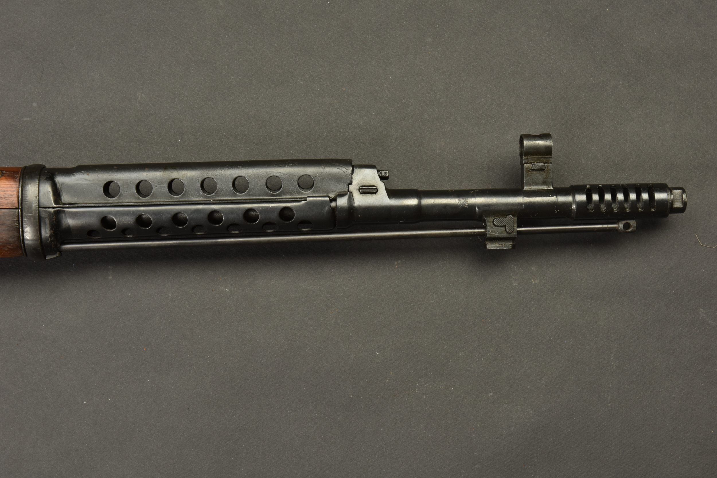 Détails de la vente >Fusil semi automatique SVT 40 Tokarev. Garnitures métalliques en couleur d’origine à 90%. Baguette de nettoyage complète. Chargeur et culasse bloqués par la neutralisation. Daté 1941.... en savoir plus