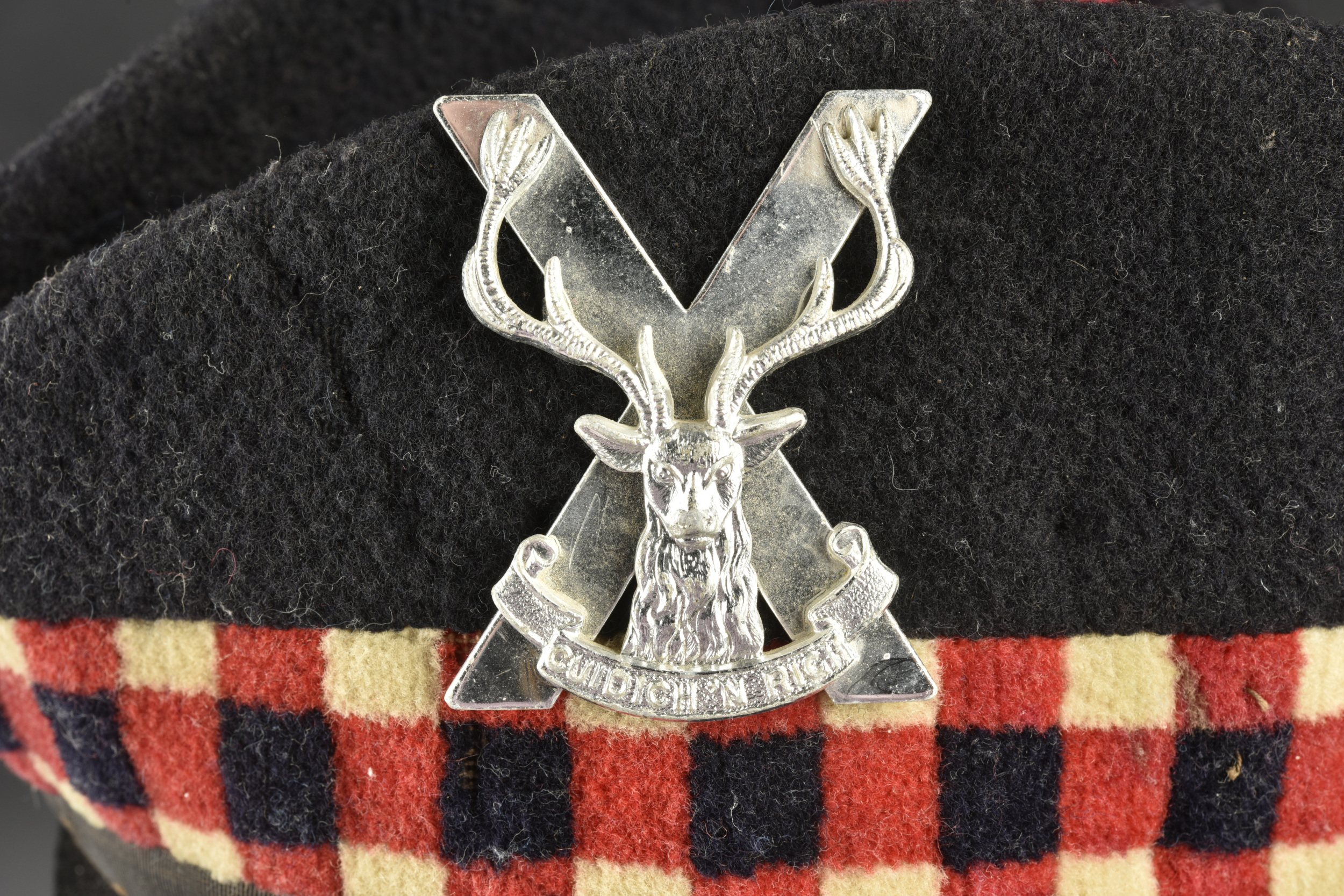 Glengarry. En tissu laineux noir. Damier noir/blanc/rouge. Reproduction d’un cap badge. Les cordons sont effilochés. Pompon rouge complet. Intérieur doublé en satinette noire. Sans... en savoir plus