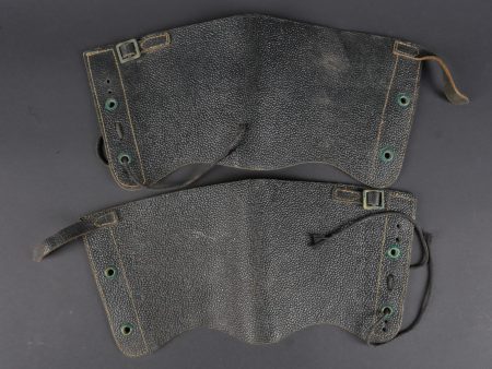 Détails de la vente >Guêtres et chaussettes de Dispatch Rider. Paire de guêtre en cuir noir, lacets complets, les sangles de fermetures sont complètes. Sans marquages visibles. Une paire de chaussette en laine... en savoir plus