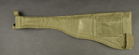 Housse de saut pour carabine USM1 parachutiste. Gaine de saut pour carabine pliante USM1. Fabrication HAV .STCH.CO , datée 1944, en toile OD7. Sangles complètes et pressions marquées Klik It,... en savoir plus