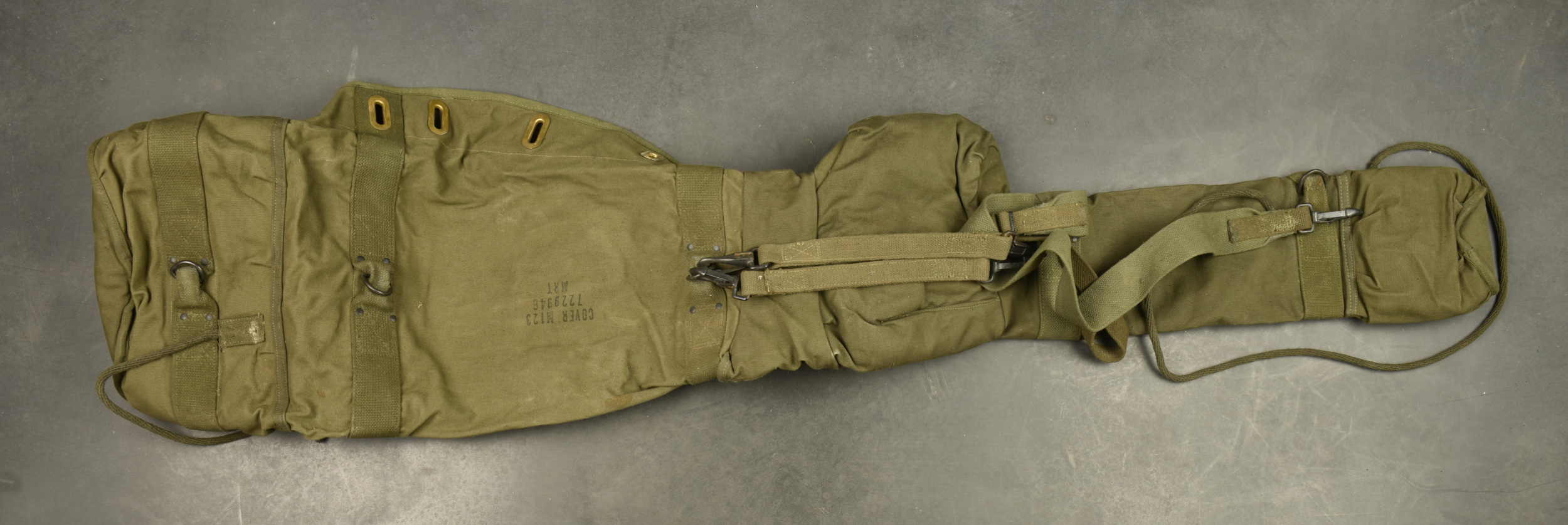 Détails de la vente >Housse pour canon sans recul US. En forte toile OD7. Toutes les sangles sont présentes. Marquages cover M123 7229946 MRT. On y joint la lunette du canon sans recul, en métal, peinture kaki à... en savoir plus