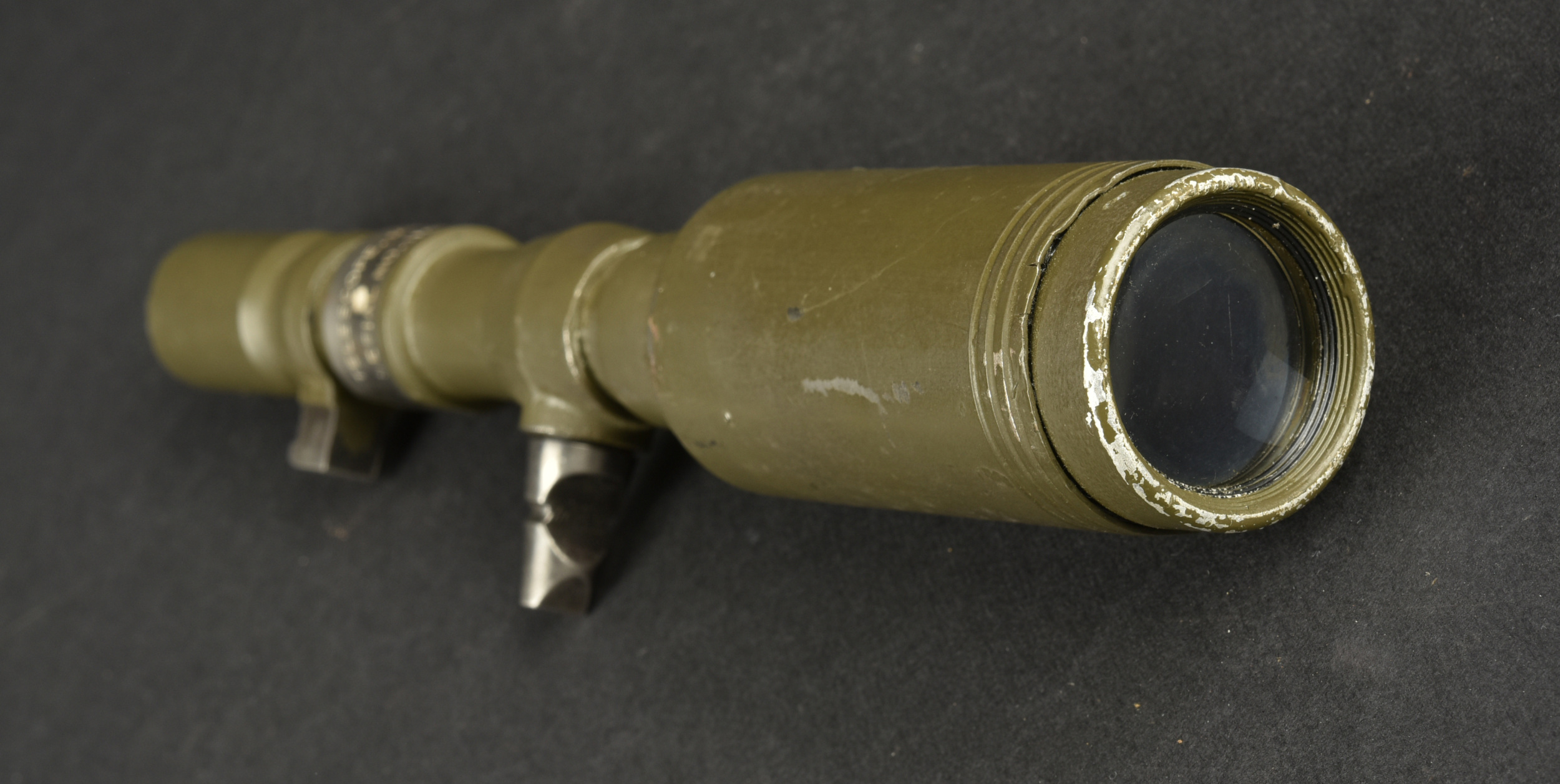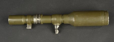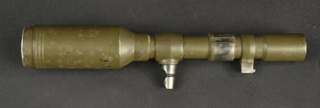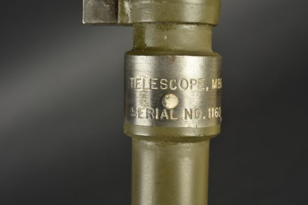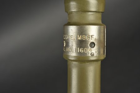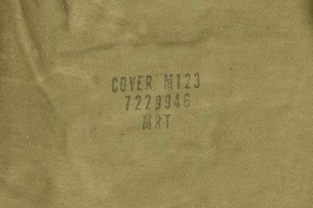 Housse pour canon sans recul US. En forte toile OD7. Toutes les sangles sont présentes. Marquages cover M123 7229946 MRT. On y joint la lunette du canon sans recul, en métal, peinture kaki à 80%. Le système de fixation au canon est présent. Marquages Telescope M86F Serial NO 11604. Optique claire et graduée présentant quelques tâches. Etat II+.
