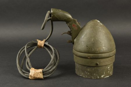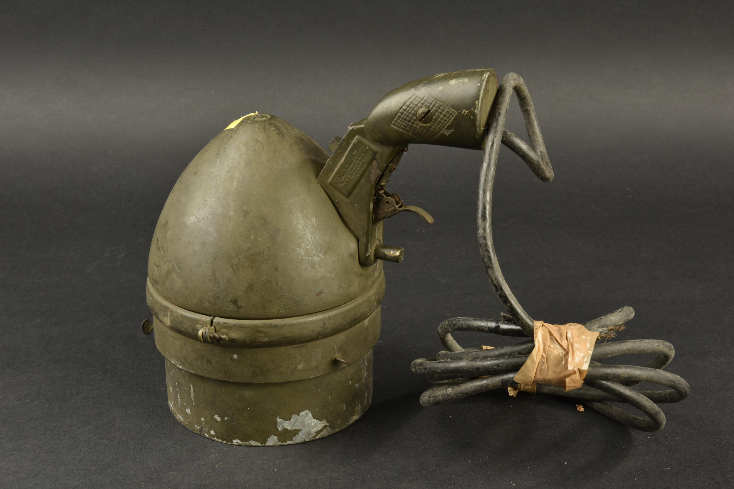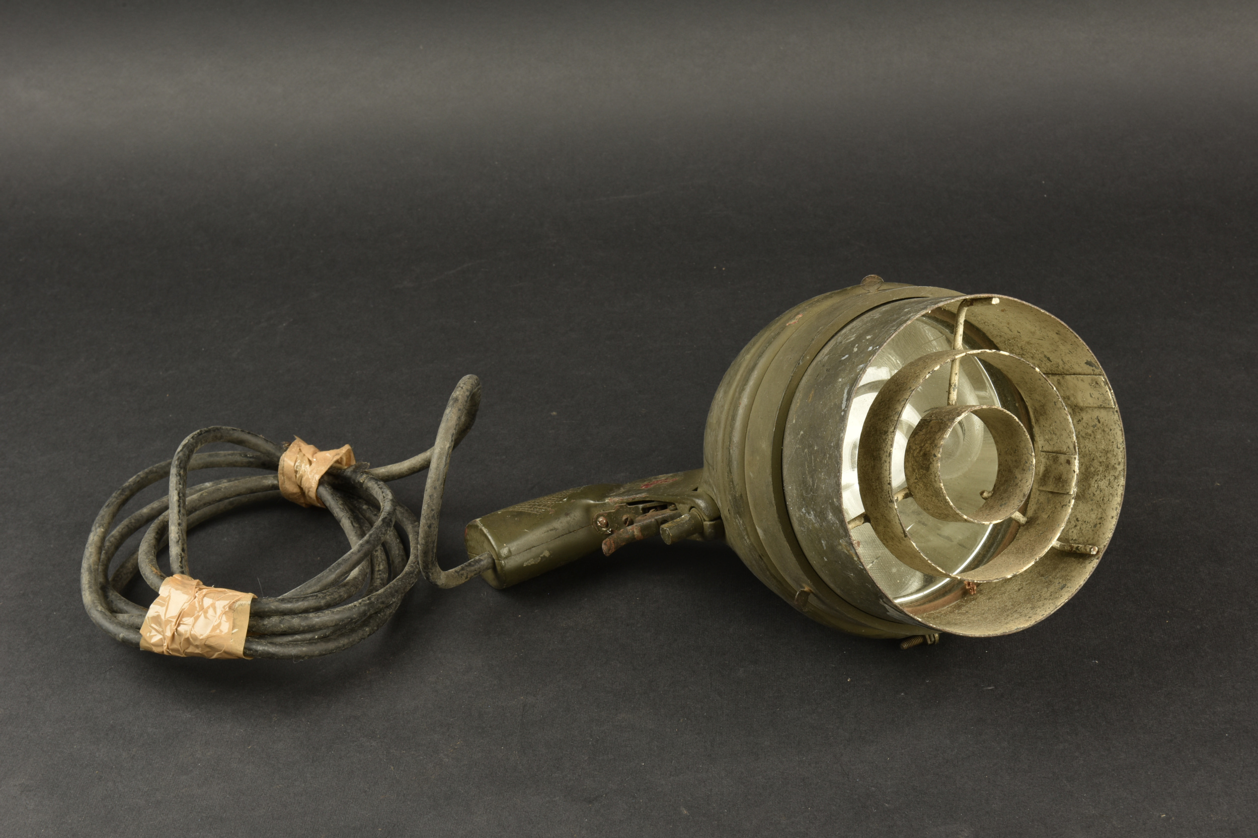 Lampe US pistol light grip. Lampe américaine portative de l’US Army, utilisée comme projecteur de recherchen éclairage de campement, par les mécaniciens pour éclairer le compartiment... en savoir plus