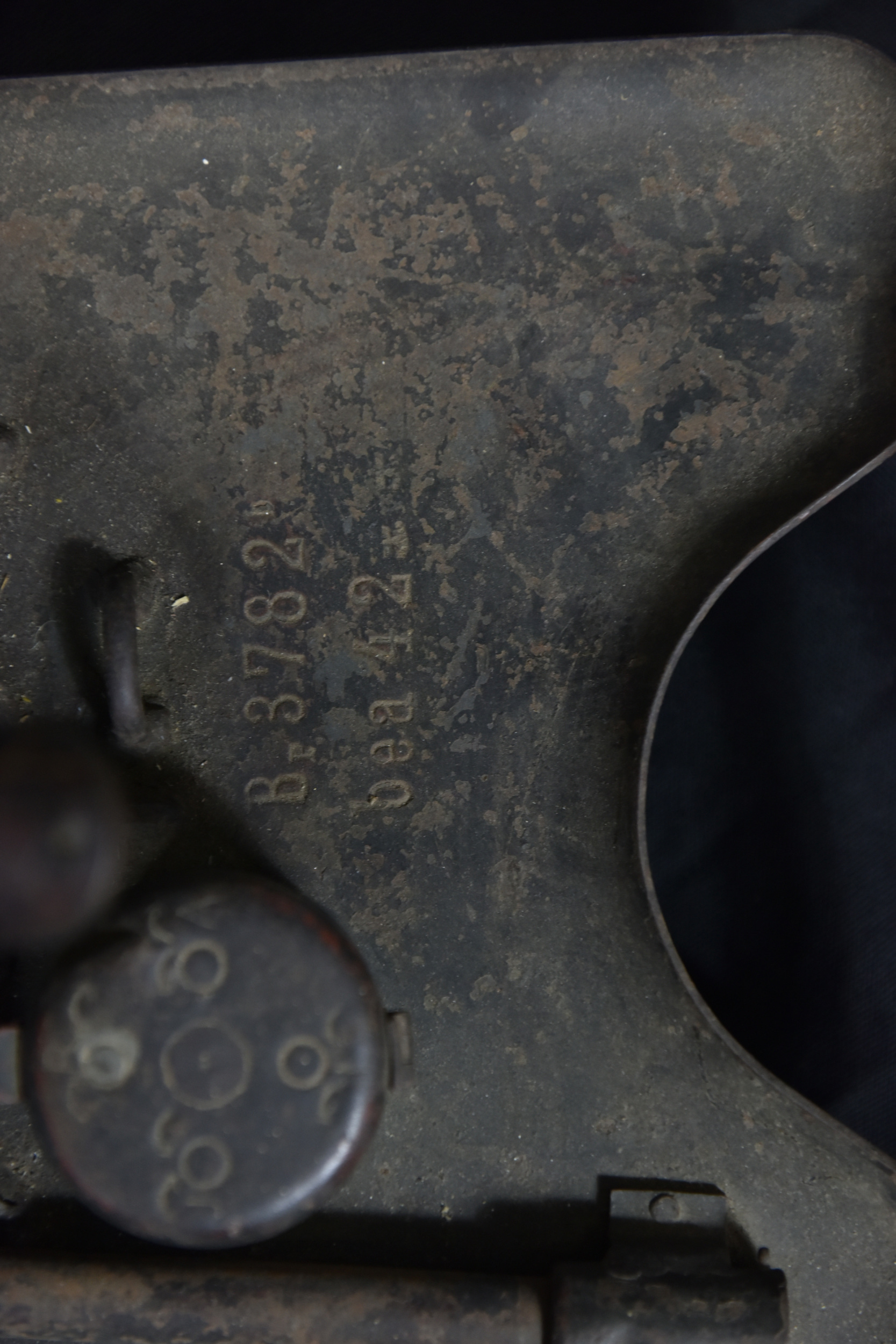 Détails de la vente >Leichtgranatwerfer 36. Calibre 50mm, numéro R3782B, fabrication Rheinmetall. Ensemble en métal dans son bronzage d’origine à 75%. Plaque de sol marquée MR B3782 BEA 42, avec aigle Waa.... en savoir plus