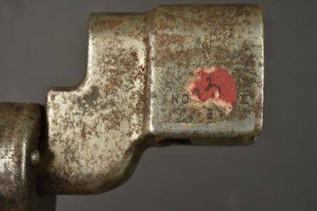 Lot de 2 baïonnettes anglaises clous. Une baïonnette clou n°4 MkII avec fourreau plastique fabrication US sans sa toile. Et une reproduction de baïonnette pour Sten MkII, non marquée. Usure,... en savoir plus