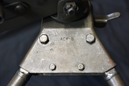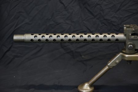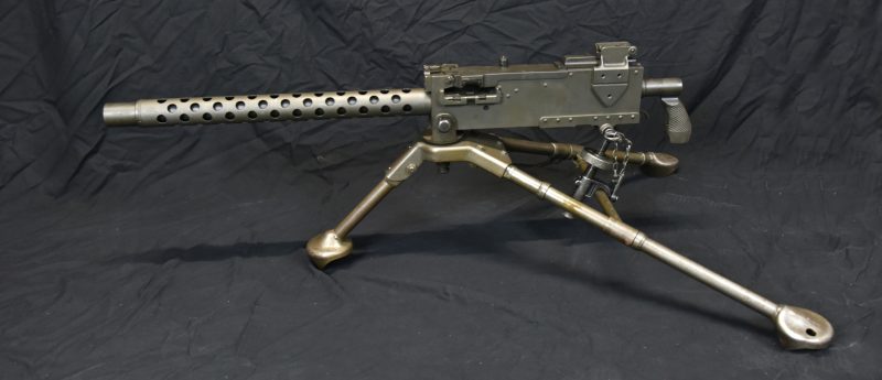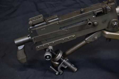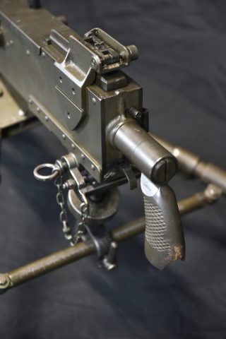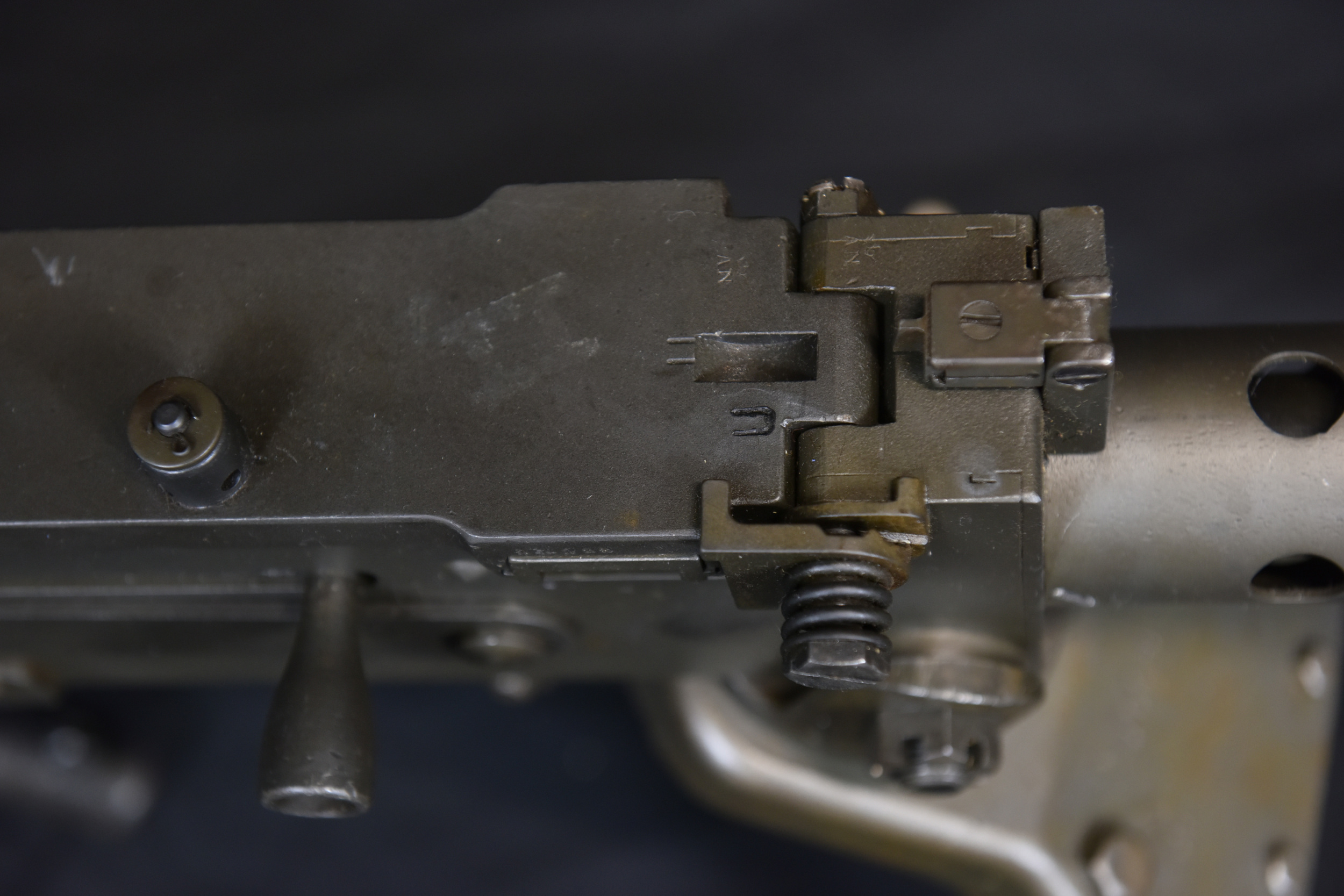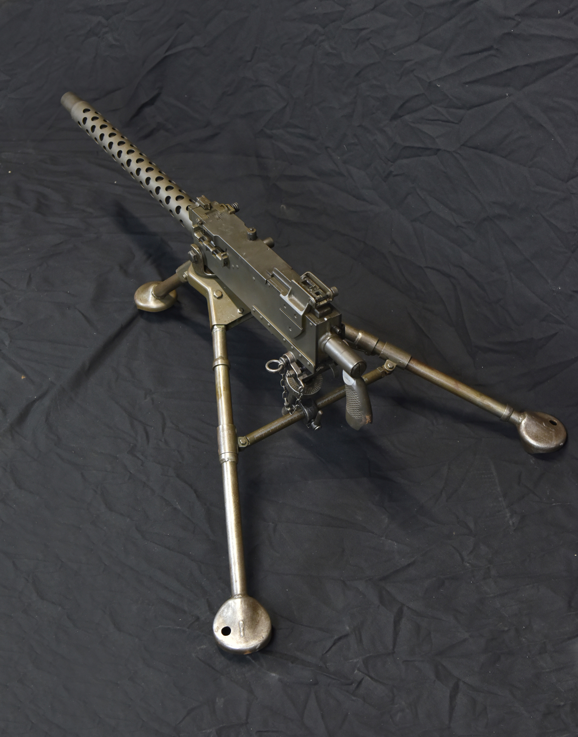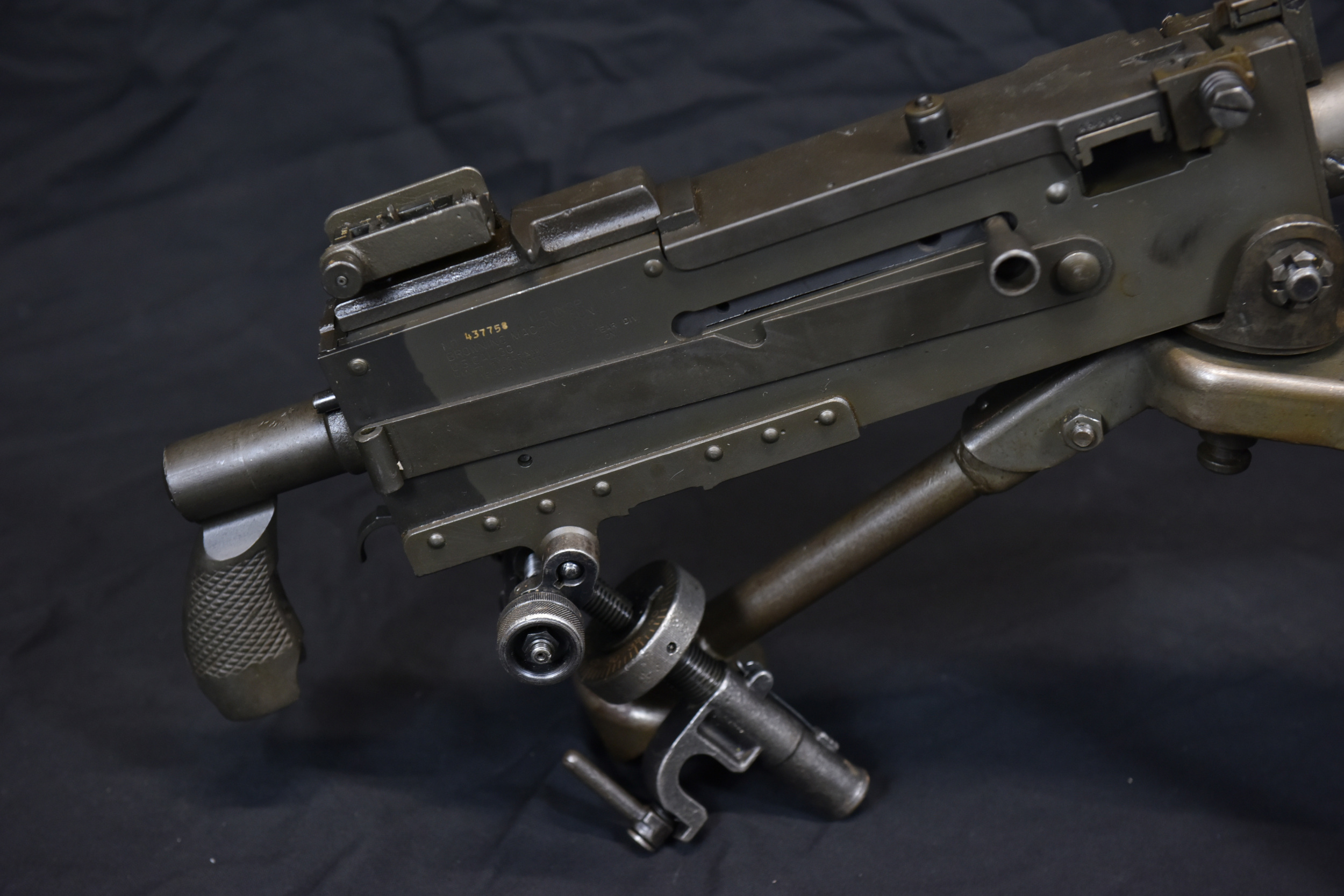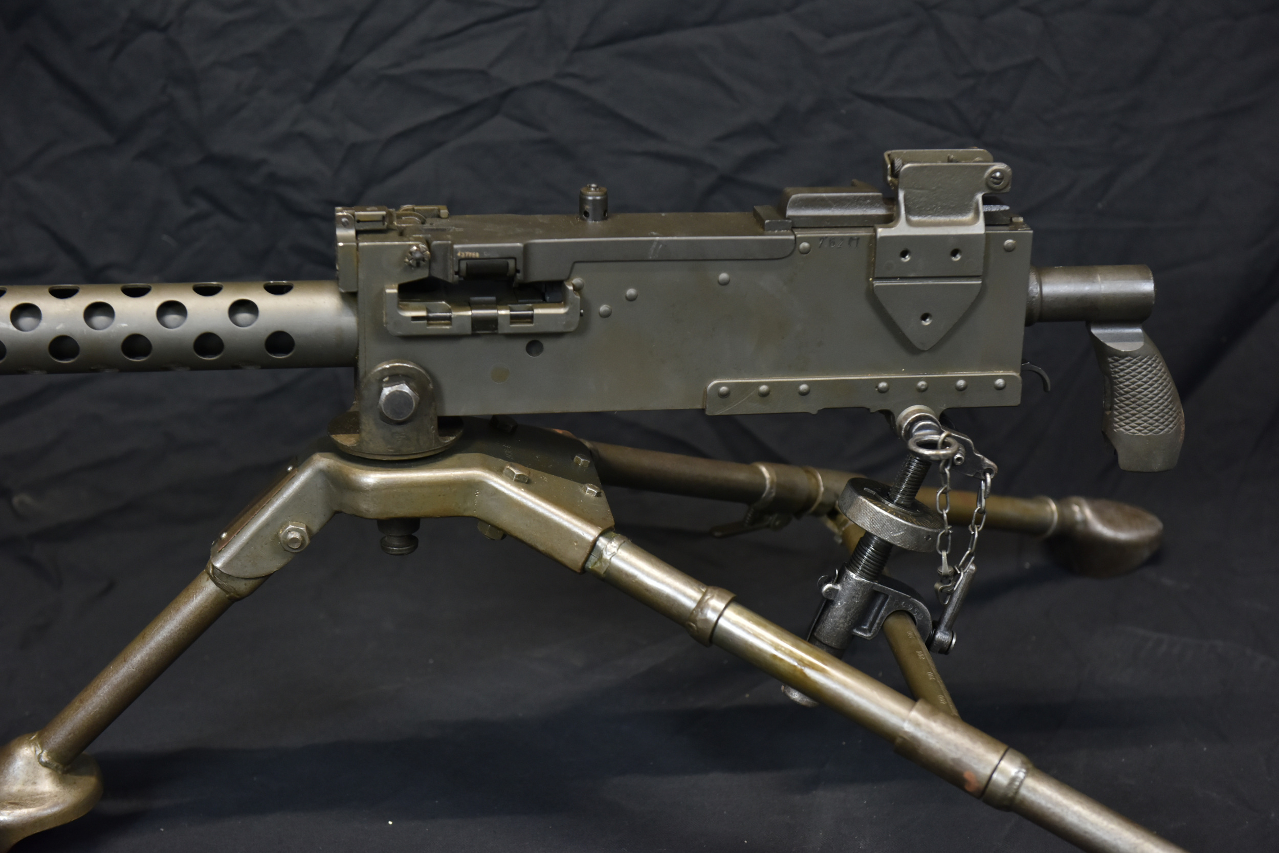 Mitrailleuse de 30US. Tout en métal, bronzage présent à 80%. Culasse mobile grâce à une neutralisation +. Fabrication Saginaw Browning 1919A4, numéro 437758. Trépied en métal complet, toutes les pièces mobiles sont fonctionnelles. Marquage à l’embase ACKB. Plaque 70396 HMR Mount Tripod Cal 30 M2, the Akling Stamping 1942. Elevatine présente, mais oxydée. Catégorie C9. Arme neutralisée aux nouvelles normes européenne par le Banc d’épreuve de Saint Etienne. Cette arme doit être déclarée avec Cerfa et certificat médical de moins de 1 mois ou licence de tir tamponnée ou permis de chasse valide (art R312-56). La délivrance de l’arme n’aura lieu qu’après consultation du fichier Finadia. L’inscription de l’acheteur sur ce fichier entrainera automatiquement la nullité de la vente. A noter une certaine usure et patine de la pièce. Etat II+.