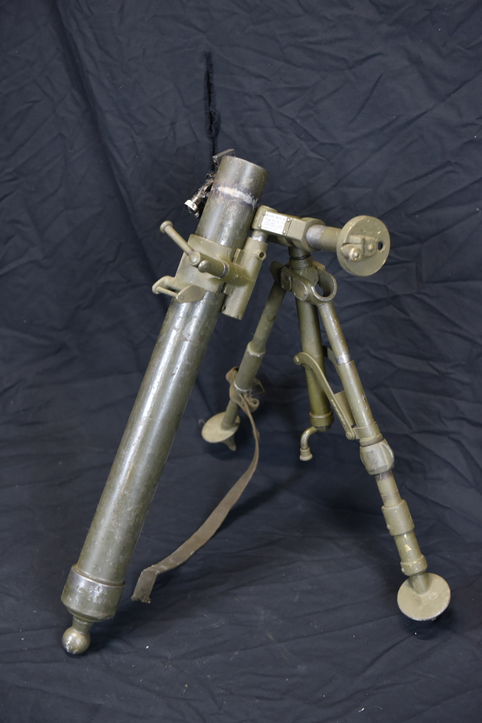 Détails de la vente >Mortier US M19 60mm. Fabrication Ordnance DP WHP Corp, numéro 6578. Plaque de sol absente. Tube en métal, lisse, peinture kaki à 70%. Marqué ODP A 55 Numéro USA 6578. Reste d’une ligne... en savoir plus