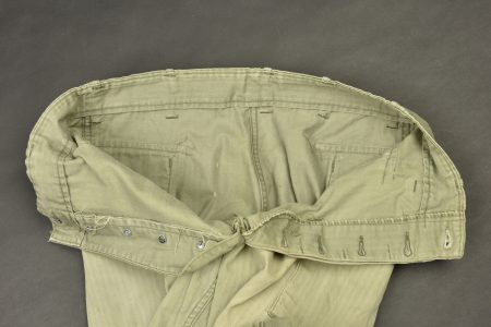 Pantalon HBT. En tissu coton HBT OD. La couleur externe est fortement décolorée par le soleil. Tous les boutons sont présents et estampillés de treize étoiles. Modèle sans bavette anti-gaz.... en savoir plus
