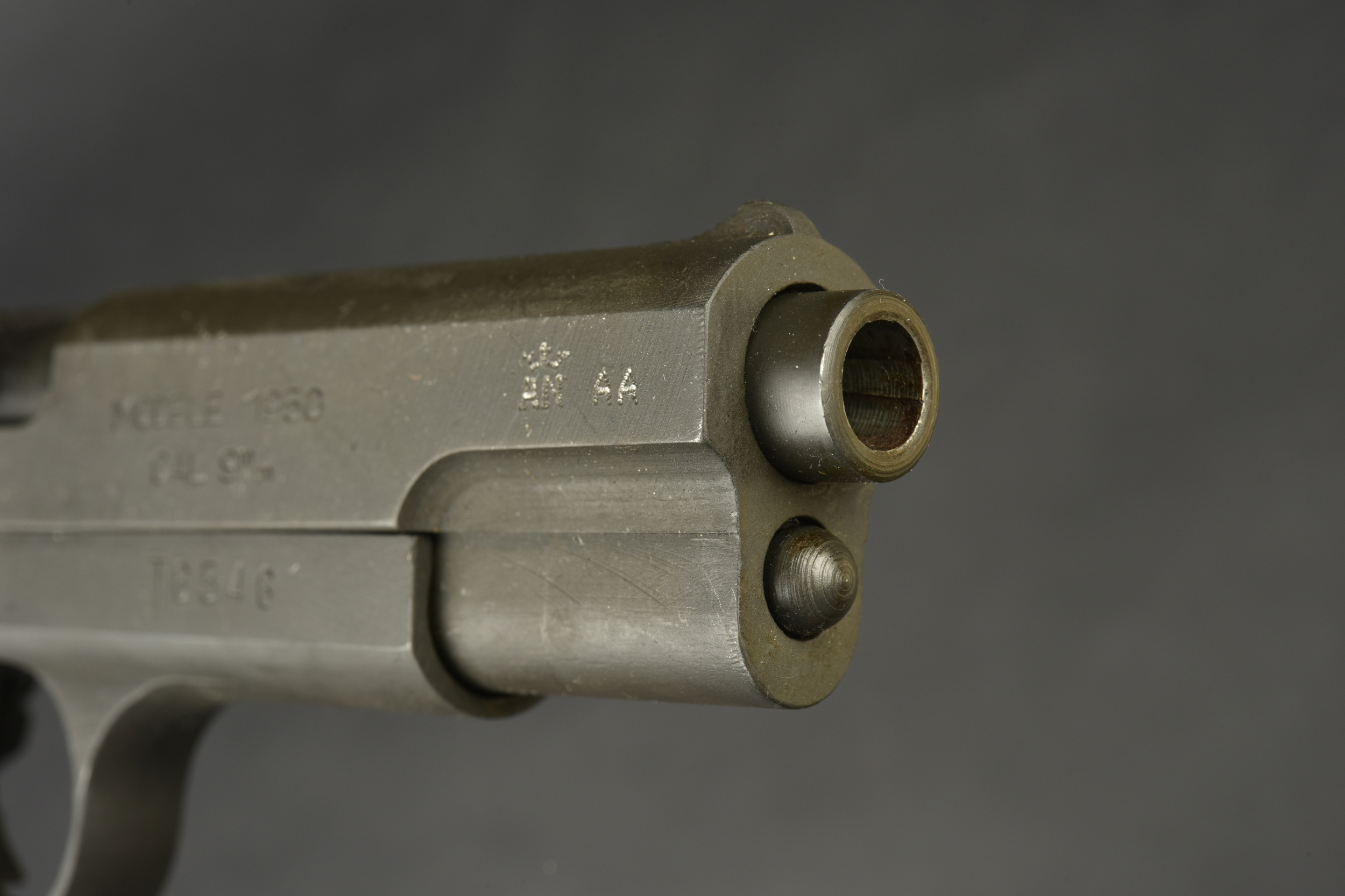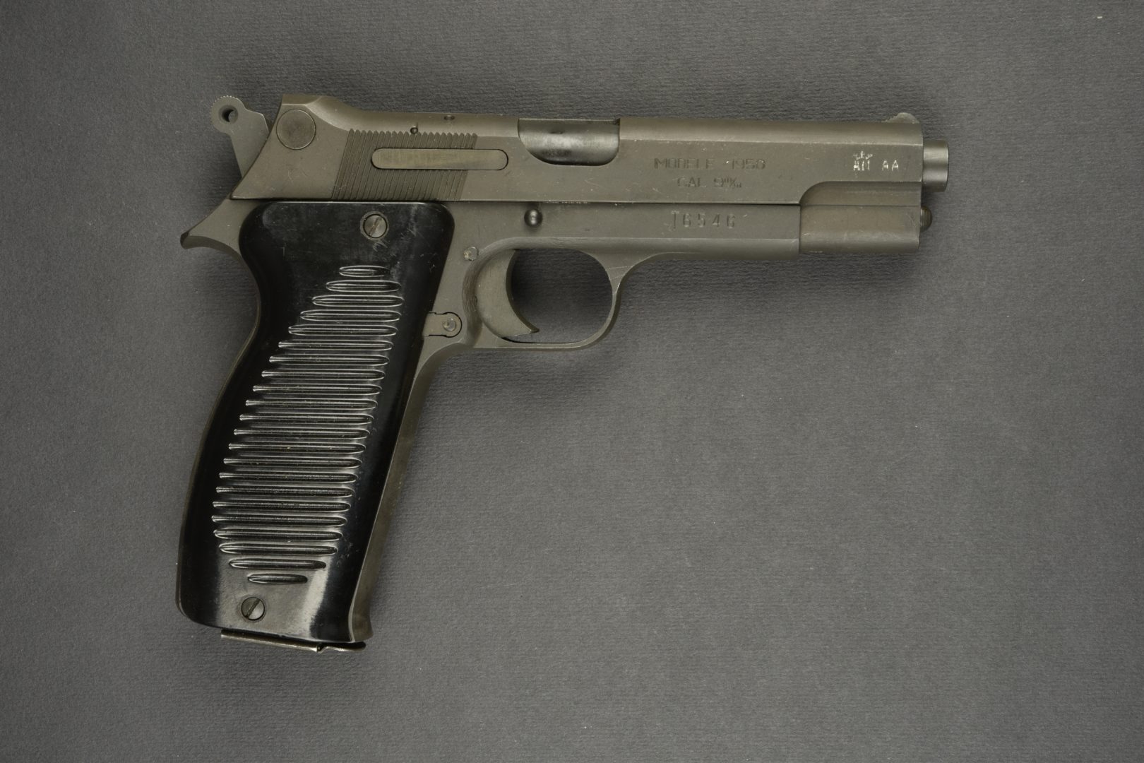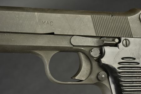 Pistolet MAC 50. Fabrication de la Manufacture d’Armes de Châtellerault. Numéro T6546. Plaquette en bakélite noire. Chargeur et culasse bloqués par la neutralisation. Bronzage d’origine à 90%. . Catégorie C9. Arme neutralisée aux nouvelles normes européenne par le Banc d’épreuve de Saint Etienne. Cette arme doit être déclarée avec Cerfa et certificat médical de moins de 1 mois ou licence de tir tamponnée ou permis de chasse valide (art R312-56). La délivrance de l’arme n’aura lieu qu’après consultation du fichier Finadia. L’inscription de l’acheteur sur ce fichier entrainera automatiquement la nullité de la vente. A noter une certaine usure et patine de la pièce. Etat II+.