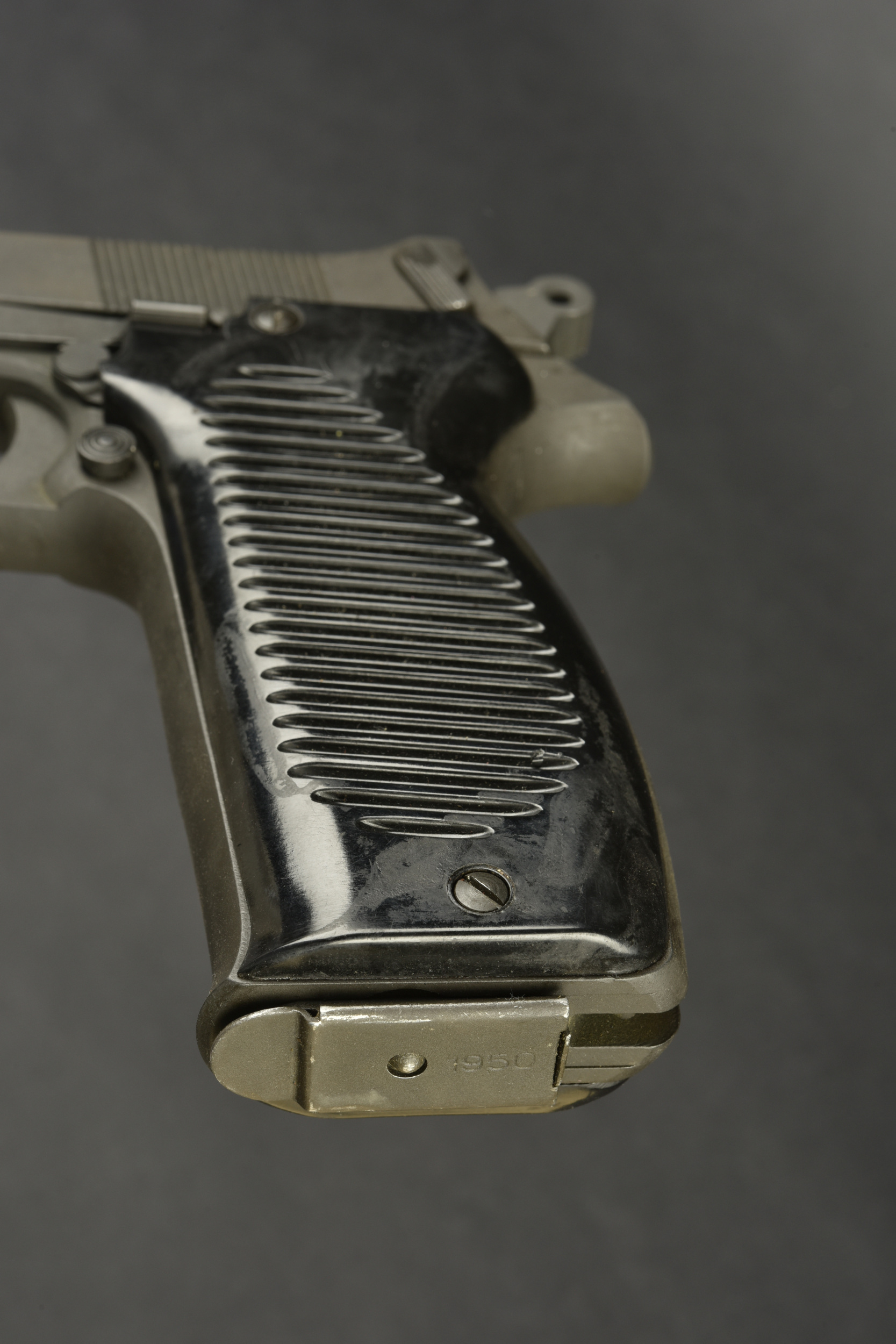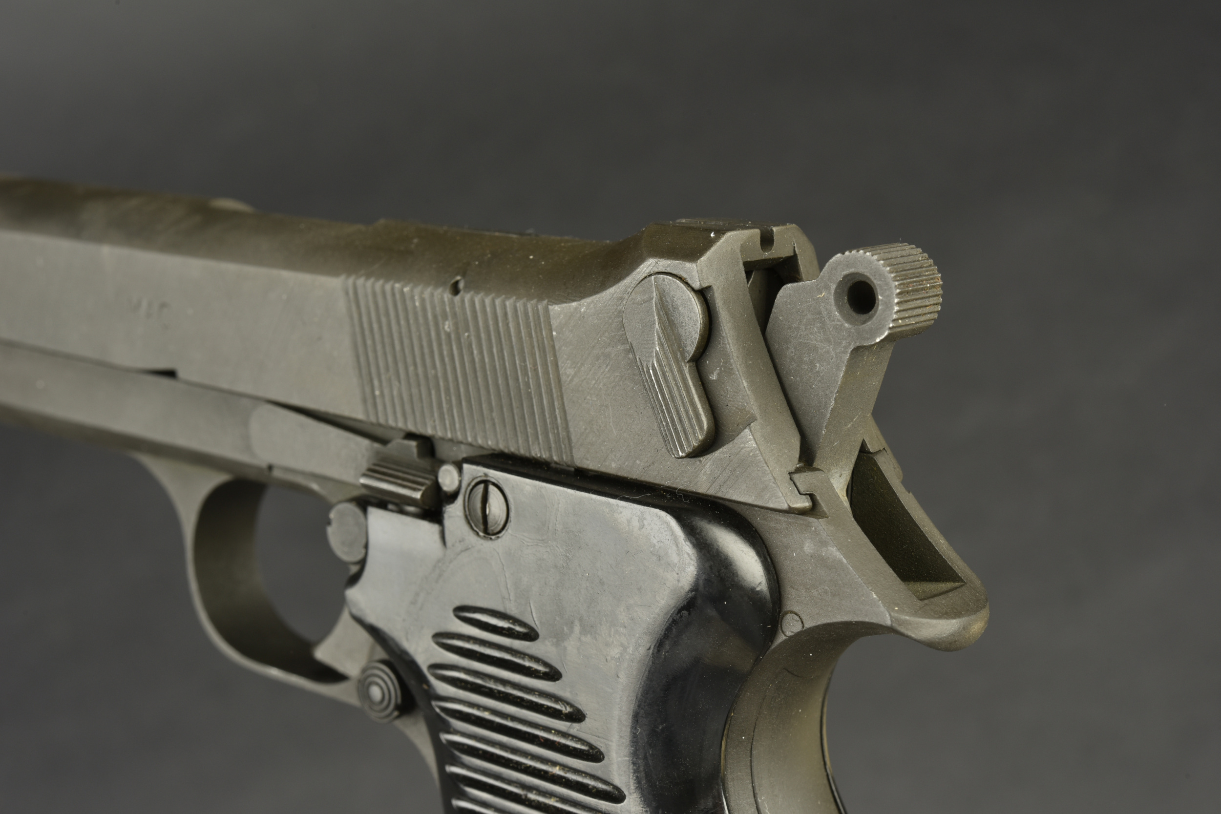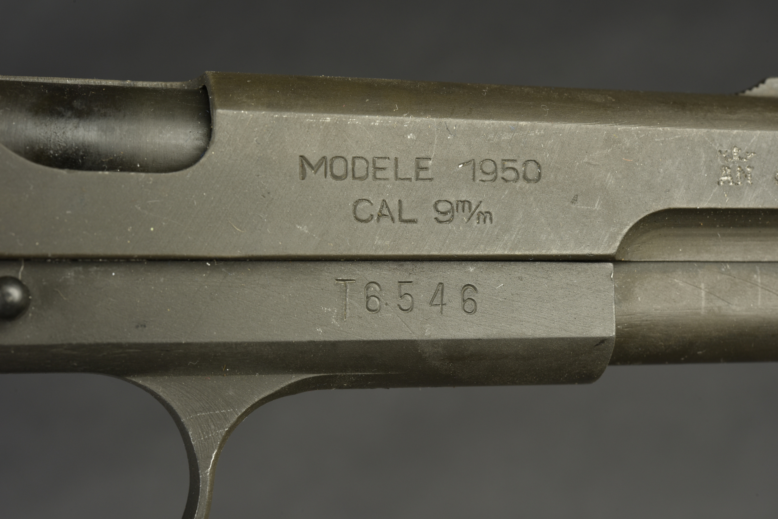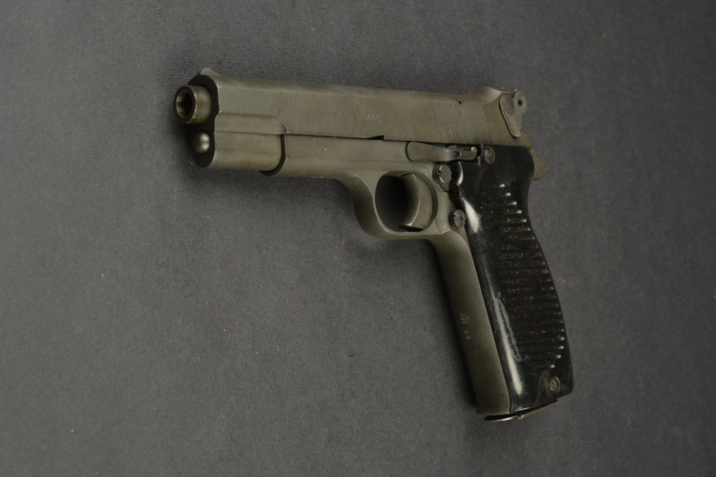 Pistolet MAC 50. Fabrication de la Manufacture d’Armes de Châtellerault. Numéro T6546. Plaquette en bakélite noire. Chargeur et culasse bloqués par la neutralisation. Bronzage... en savoir plus