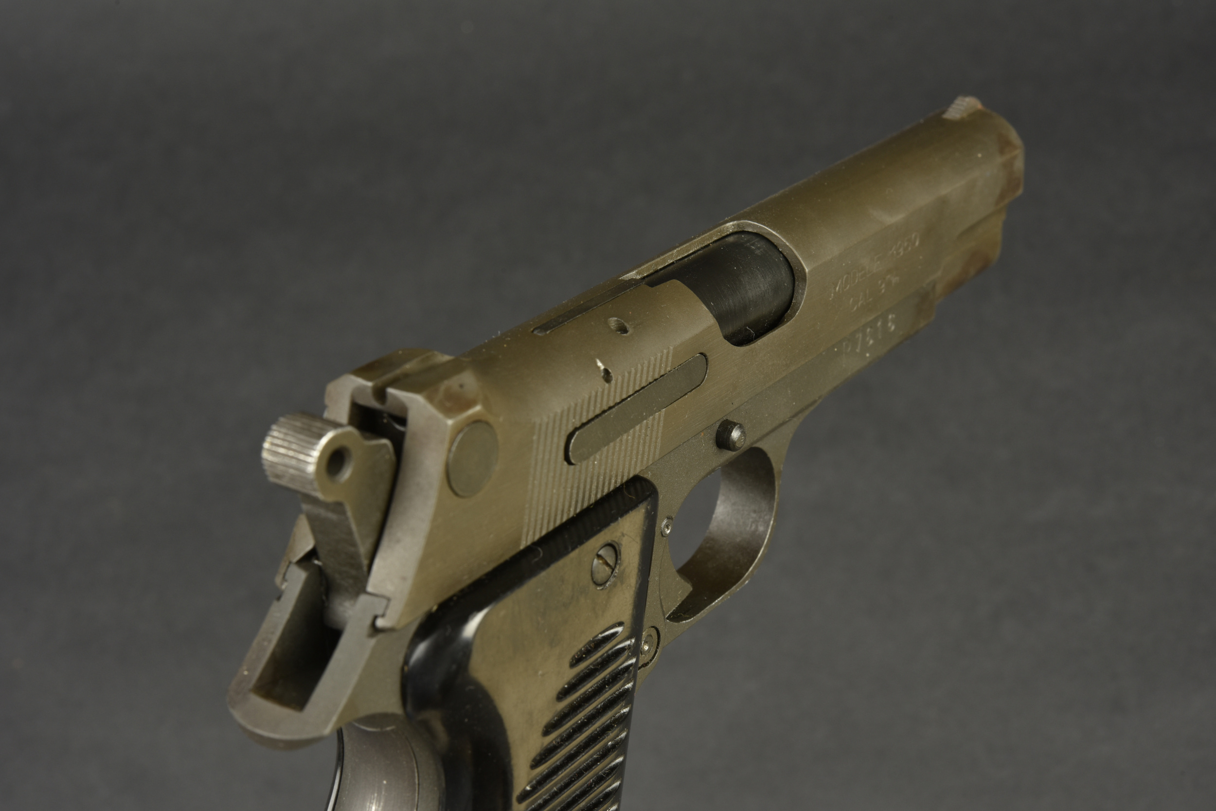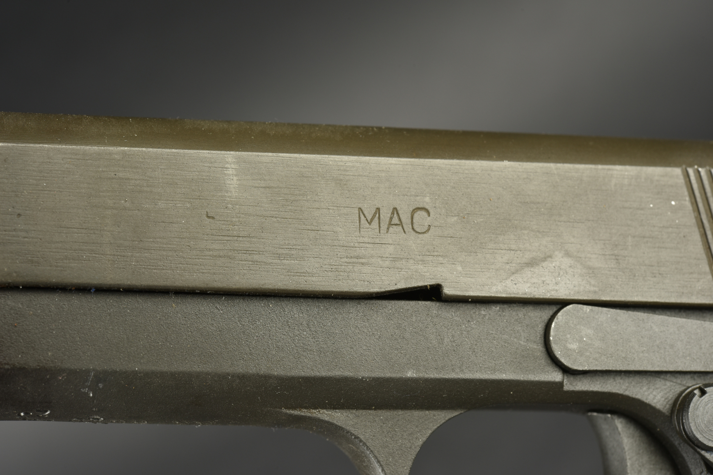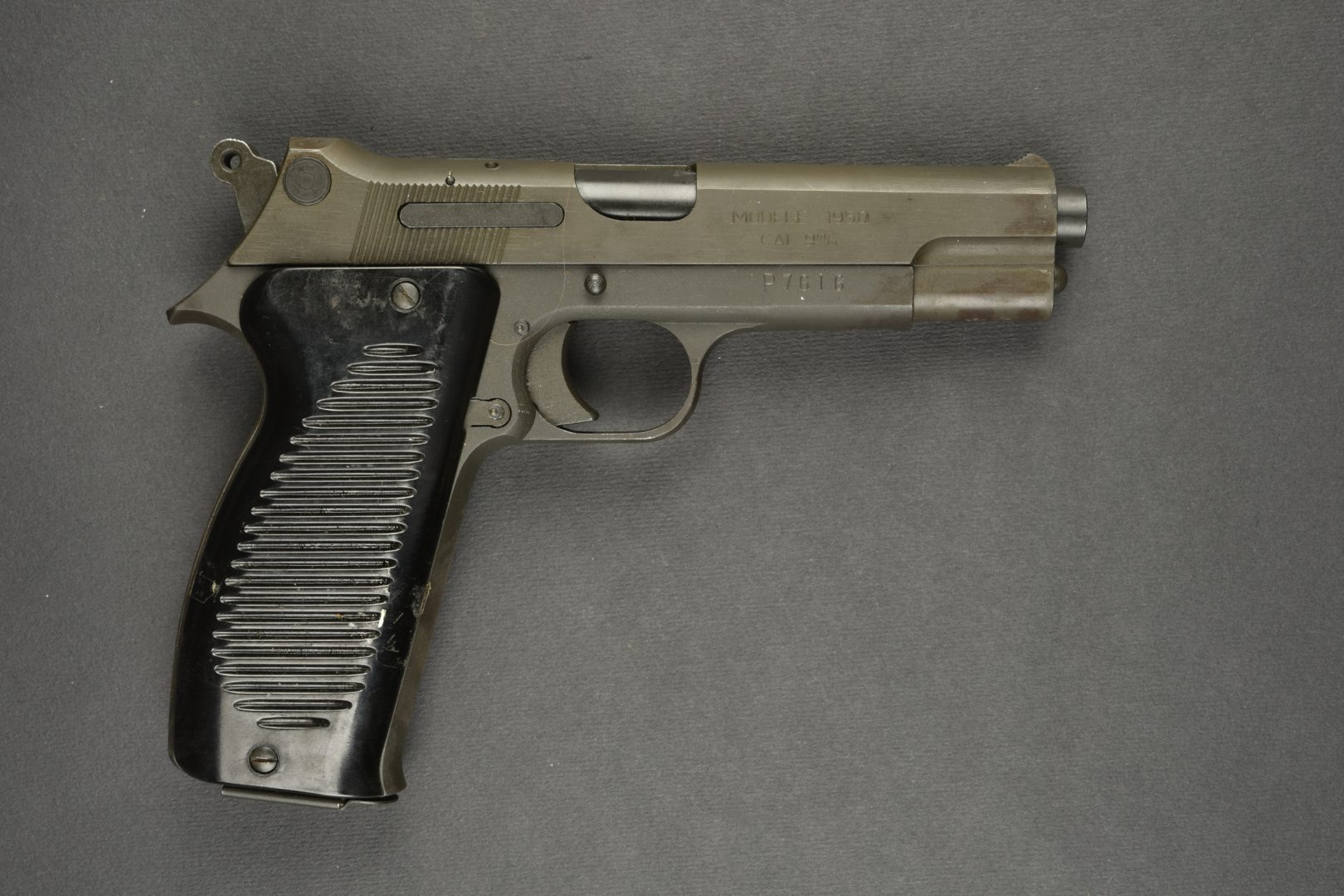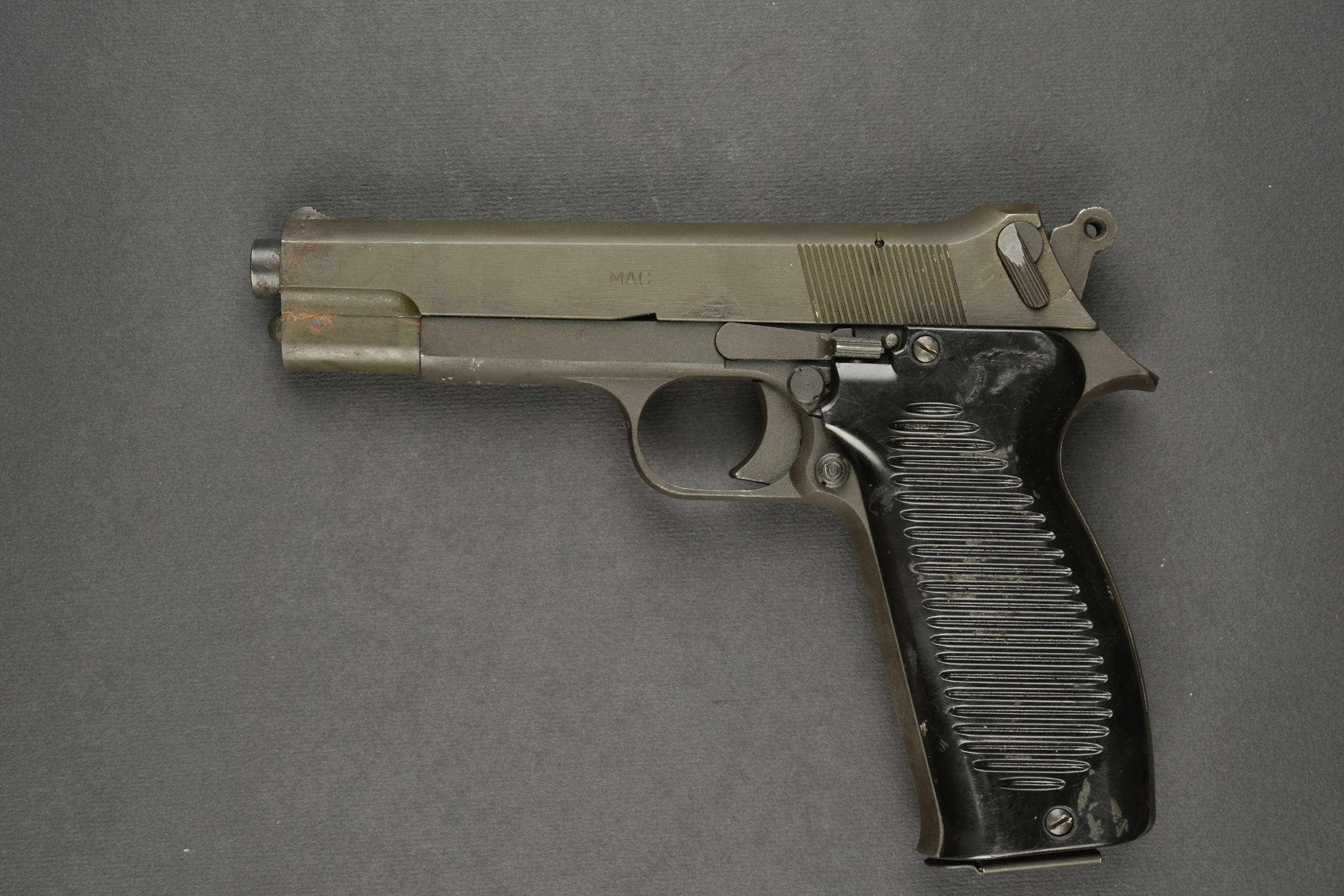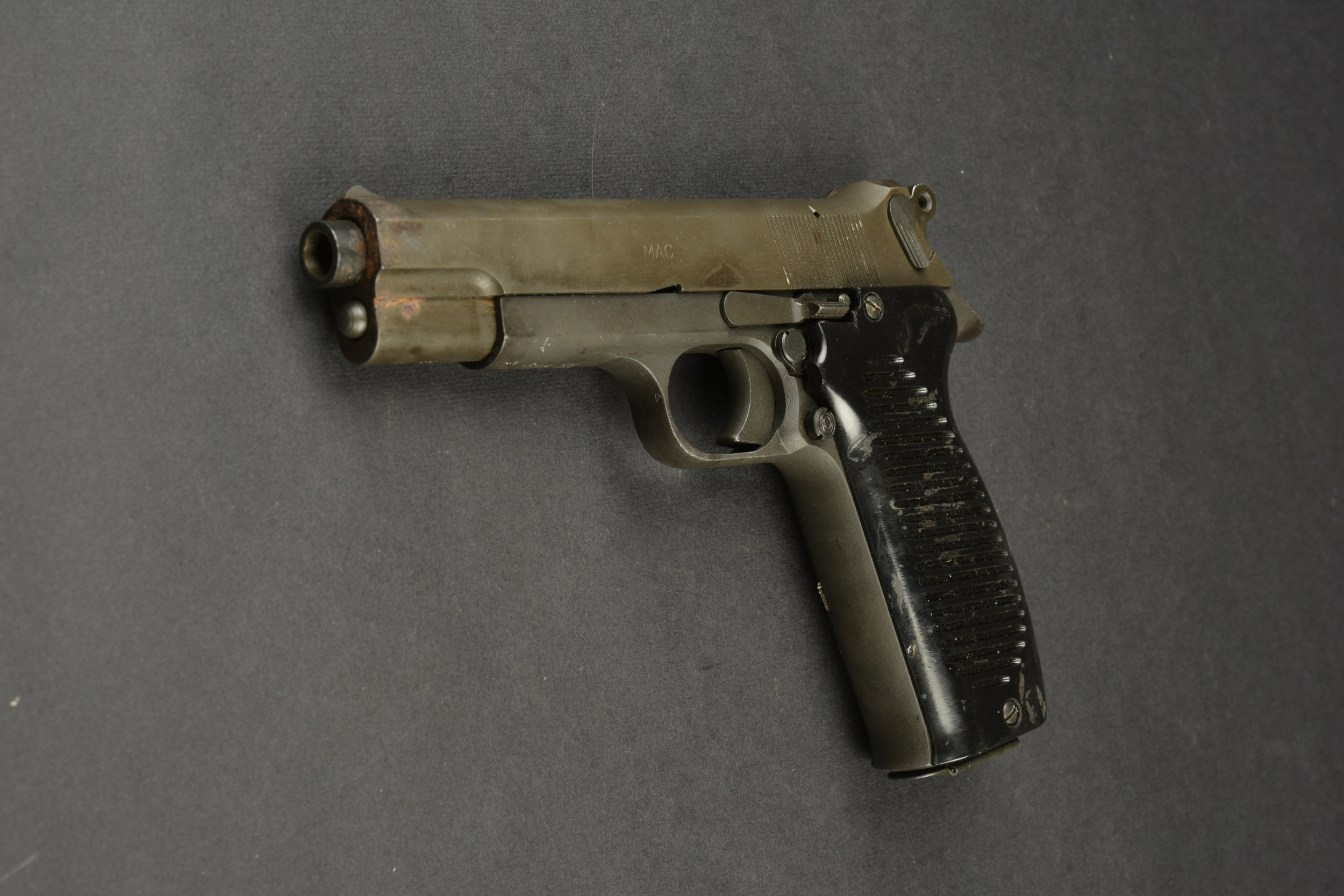 Pistolet MAC 50. Fabrication de la Manufacture d’Armes de Châtellerault. Numéro P7616. Plaquette en bakélite noire. Chargeur et culasse bloqués par la neutralisation. Bronzage d’origine à 90%. . Catégorie C9. Arme neutralisée aux nouvelles normes européenne par le Banc d’épreuve de Saint Etienne. Cette arme doit être déclarée avec Cerfa et certificat médical de moins de 1 mois ou licence de tir tamponnée ou permis de chasse valide (art R312-56). La délivrance de l’arme n’aura lieu qu’après consultation du fichier Finadia. L’inscription de l’acheteur sur ce fichier entrainera automatiquement la nullité de la vente. A noter une certaine usure et patine de la pièce. Etat II+.