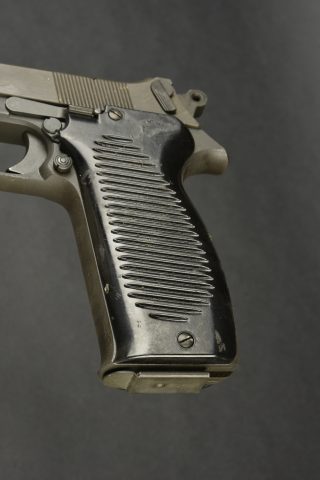 Pistolet MAC 50. Fabrication de la Manufacture d’Armes de Châtellerault. Numéro P7616. Plaquette en bakélite noire. Chargeur et culasse bloqués par la neutralisation. Bronzage... en savoir plus