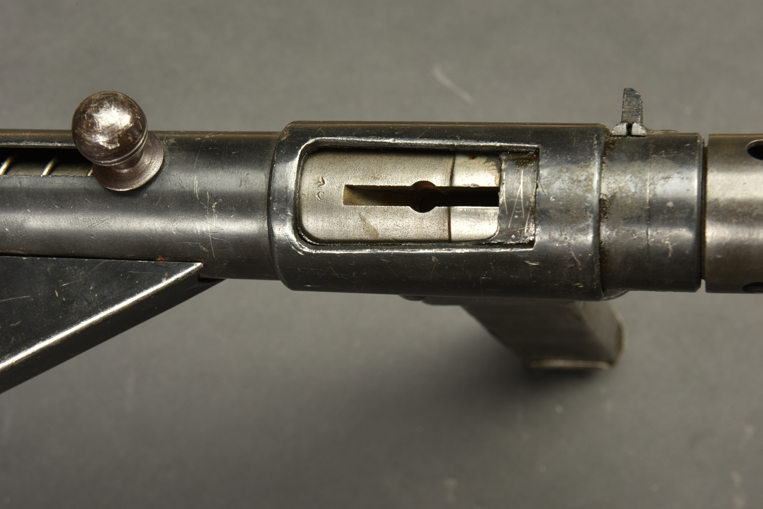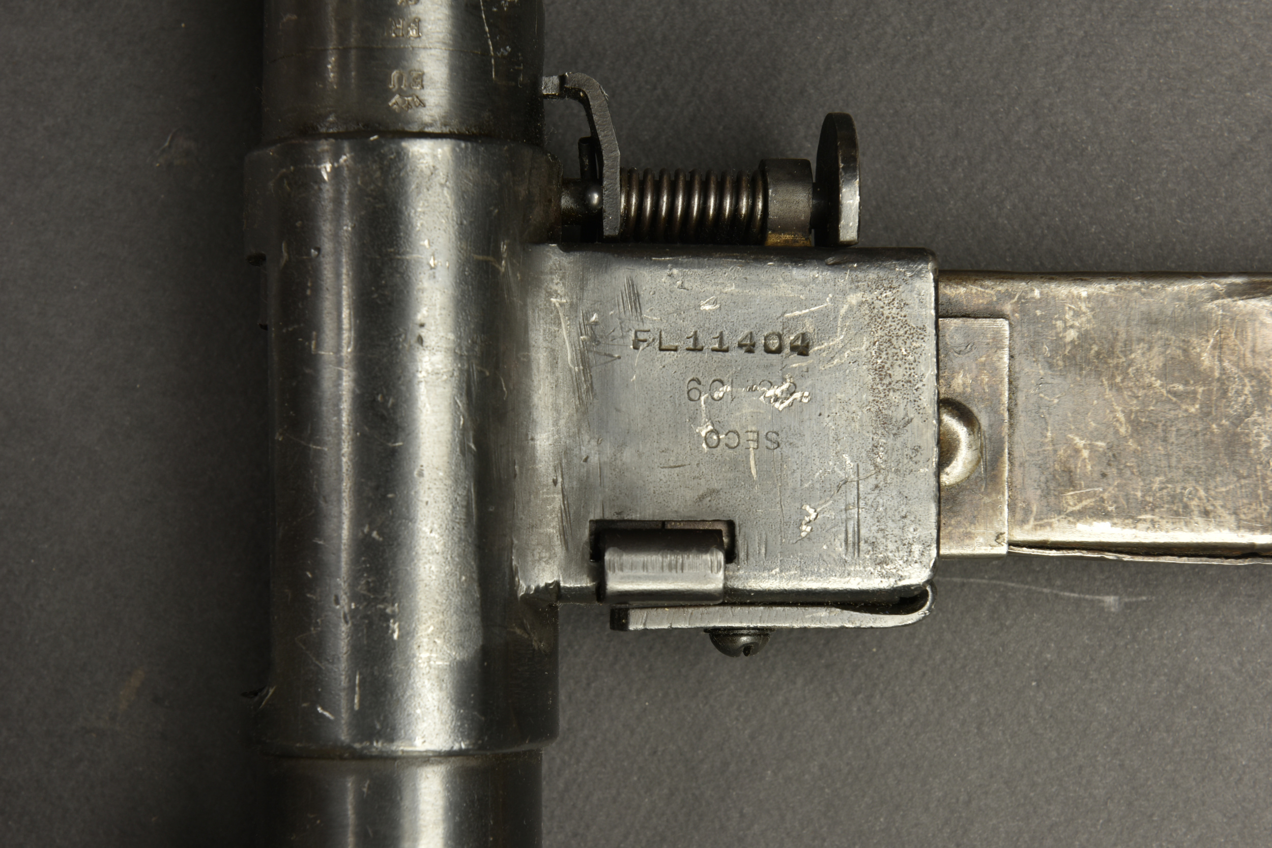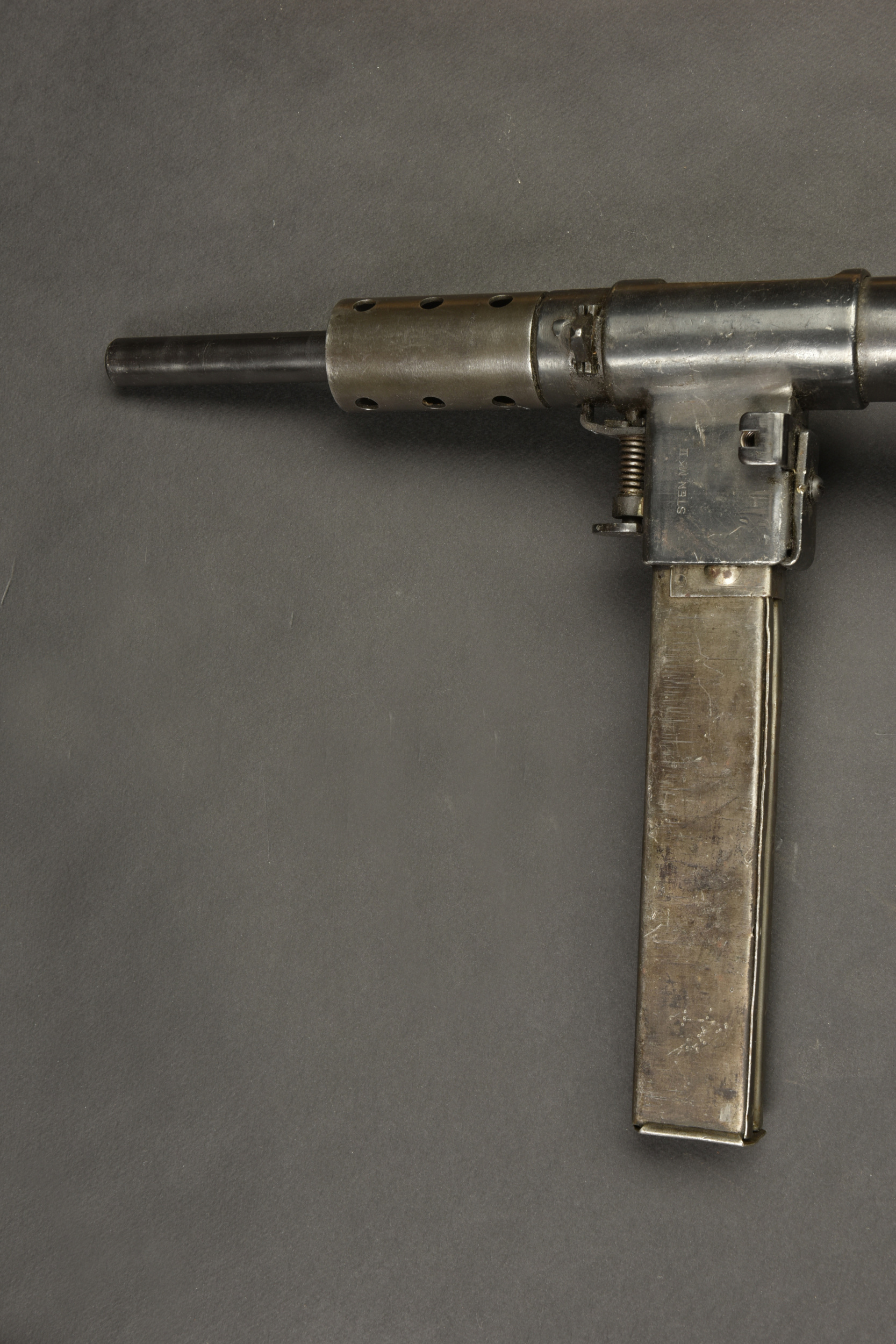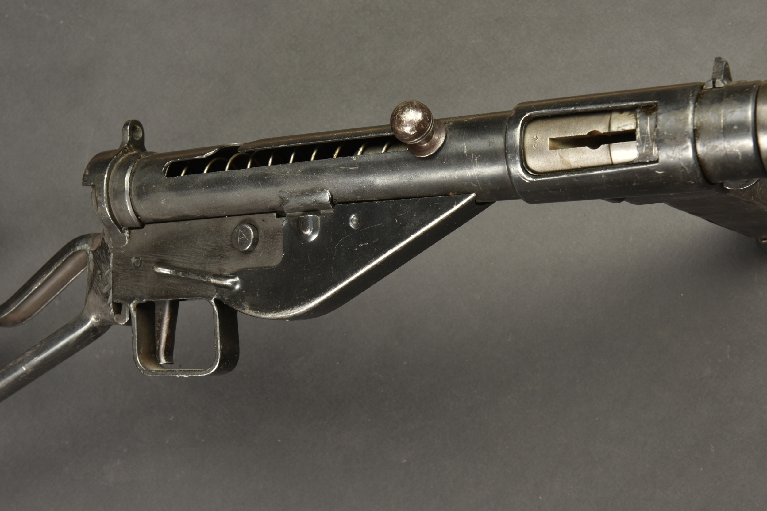 Pistolet mitrailleur Sten Catégorie C9. Modèle MK II. Calibre 9 x 19. Numéro FL 11404. Longueur 77 cm. Bronzage noir à 80%. Chargeur présent. Catégorie C9. Arme neutralisée aux nouvelles... en savoir plus