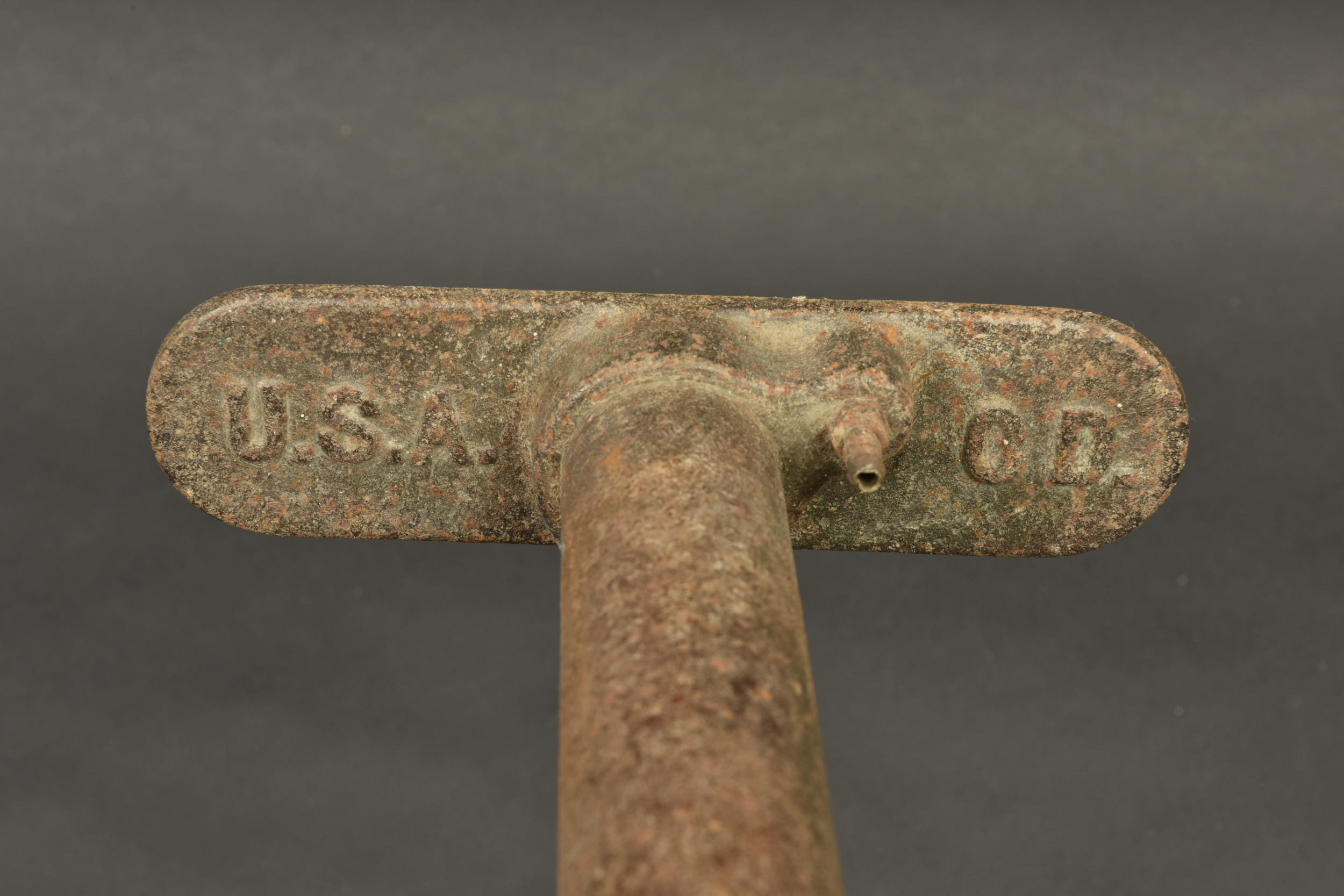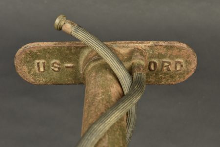Pompes à vélo US. Comprenant une pompe à vélo en métal, poignée en bois, peinture kaki à 70%, fabrication US ORD, flexible complet, mais visiblement postérieur. Une pompe à vélo en... en savoir plus