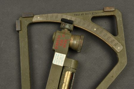 Détails de la vente >Quadrant Gunners M1. Instrument en métal, peinture kaki à 70%. Plaquette marquées Quadrant Gunners M1, numéro 58130, Mineapolis Honeywell Reg Co 1943. Niveau a bulle fonctionnel. Housse en... en savoir plus