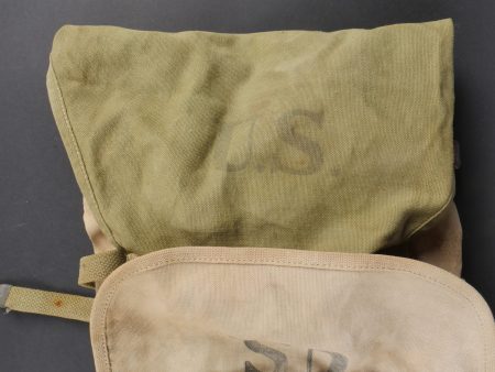 Détails de la vente >Sac à dos US M-1910. En forte toile OD, beau marquage US sur le rabat. Le triangle est un modèle de la seconde guerre mondiale, avec sa sangle en cuir. Toutes les sangles sont présentes.... en savoir plus