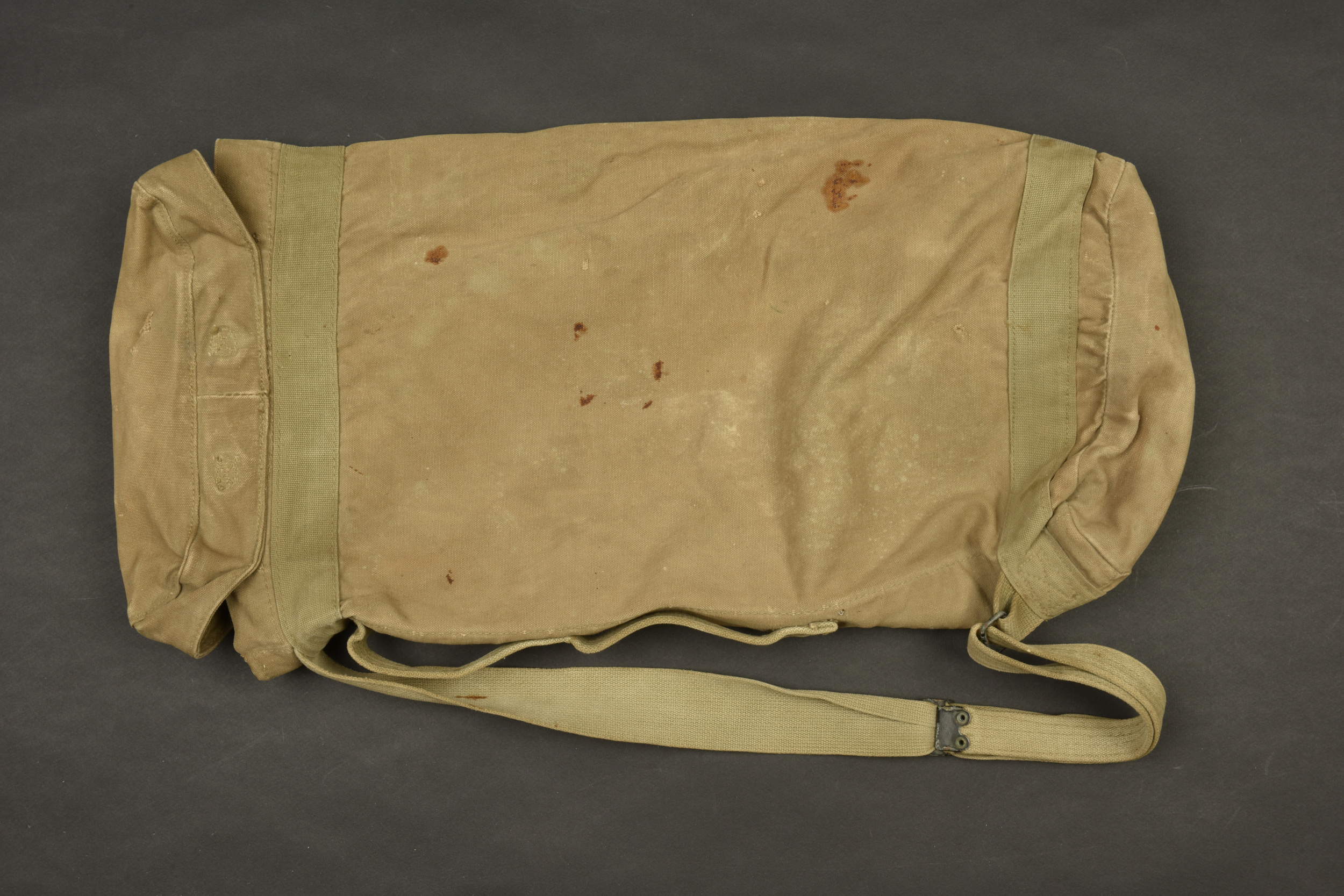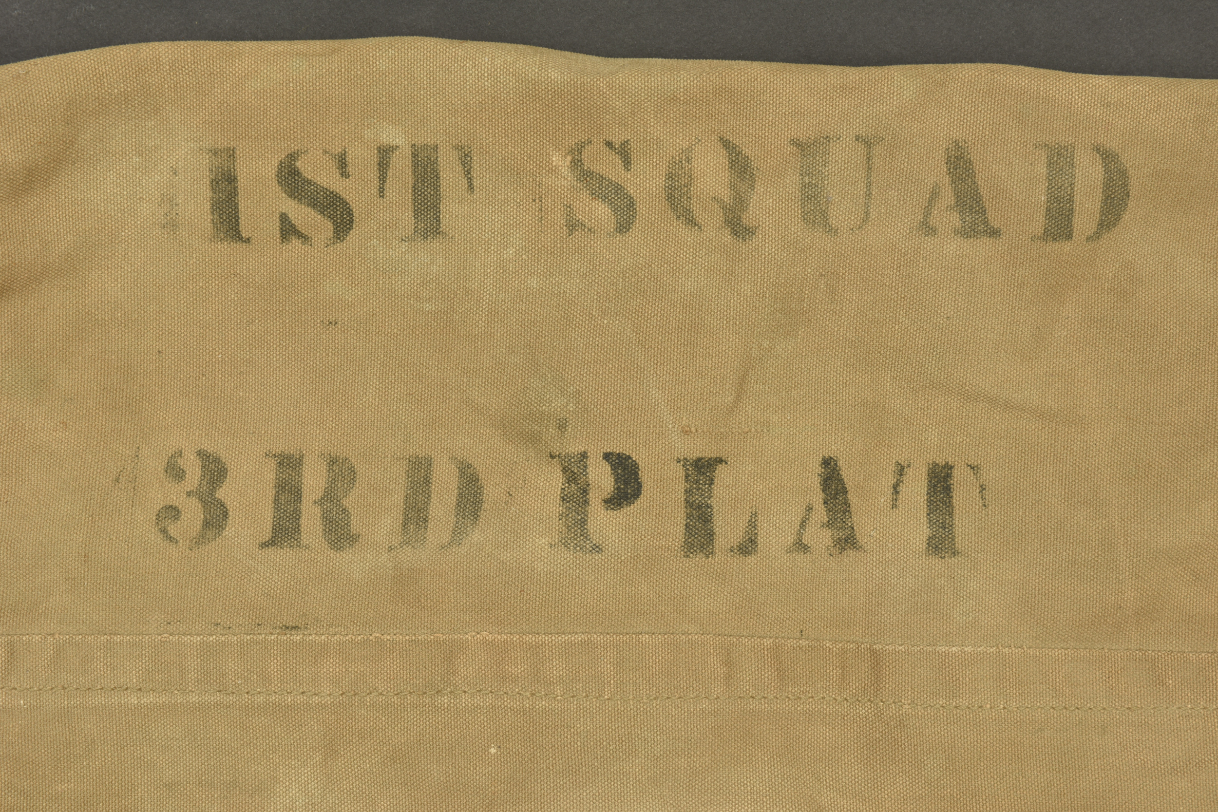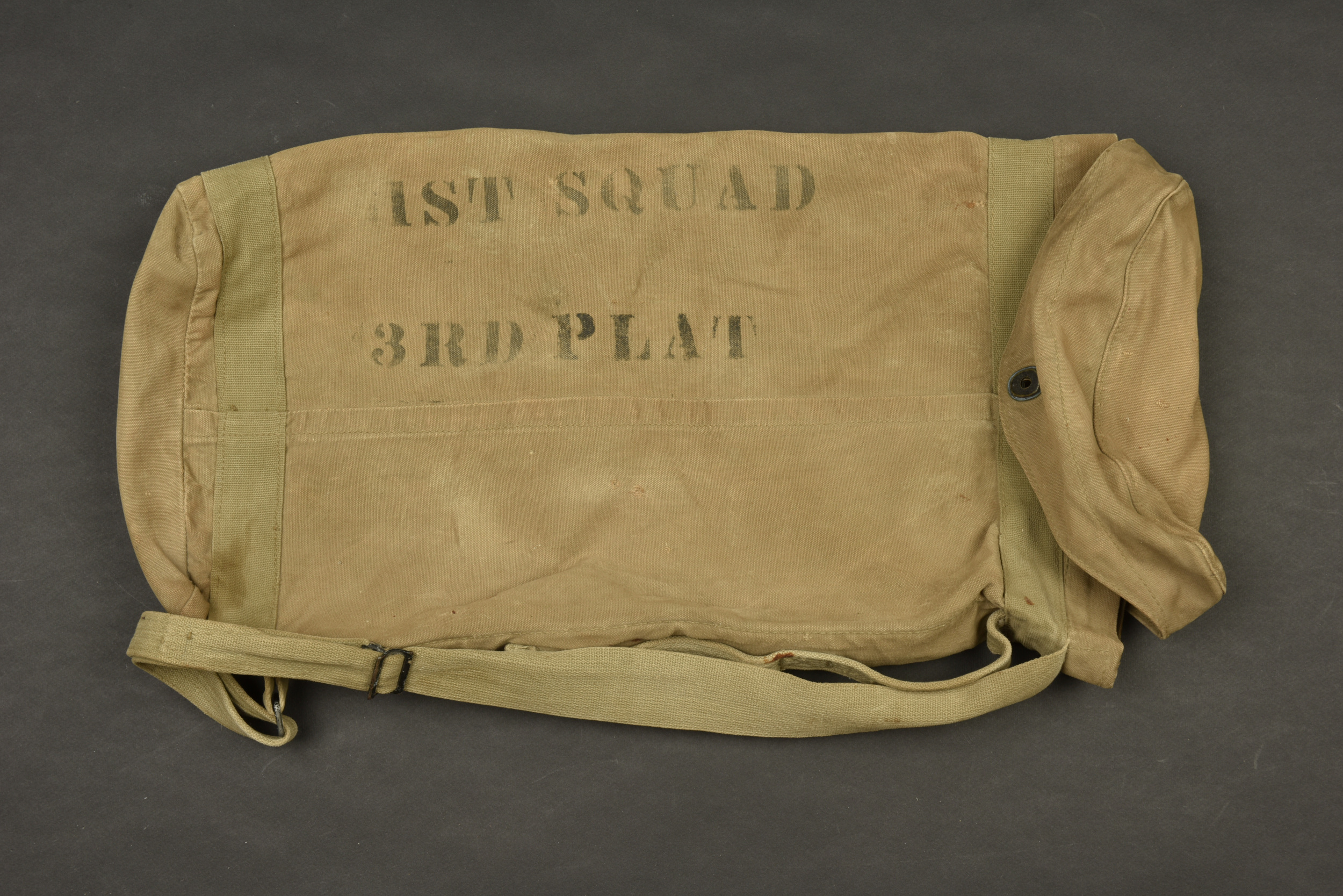 Sacoche pour Bazooka US. En forte toile OD. Les boutons sont fonctionnels. La sangle de transport est présente. Marquages au pochoir 1st Squad 3RD Plat. A noter une certaine usure et patine de la pièce, ainsi que des tâches et accrocs. Etat II+.