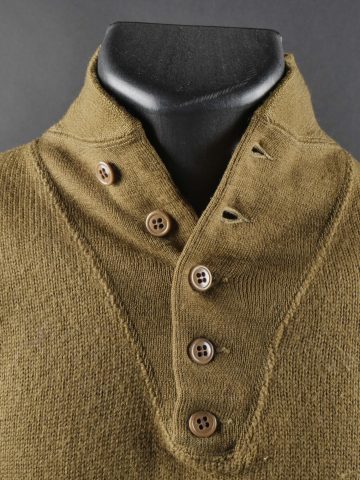 Uniforme US. Comprenant un pull 5 boutons, en épais lainage kaki, les cinq boutons sont présents, trace d’une étiquette dans le col. Quelques discrets trous de mite. Un pantalon moutarde,... en savoir plus