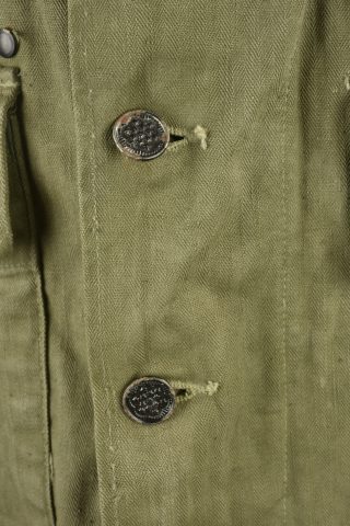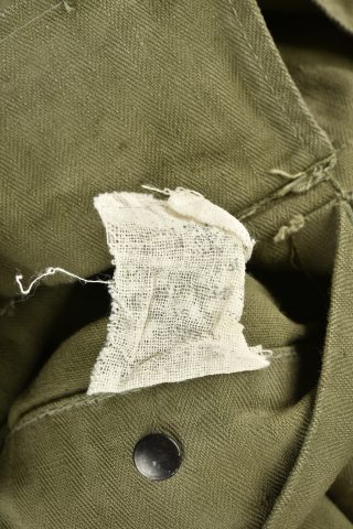 Détails de la vente >Veste HBT nominative. En tissu HBT couleur OD7. La texture du tissu peut faire penser à une imprégnation par un produit anti-gaz, en effet le tissu est poisseux au touché. Tous les boutons sont... en savoir plus