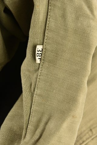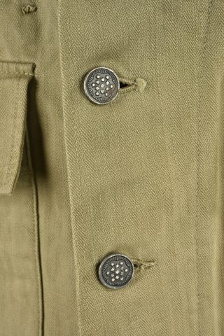 Détails de la vente >Veste HBT US. En tissu coton HBT OD. Tous les boutons sont présents et estampillés de treize étoiles. Bavette anti-gaz complète. Etiquette dans le col indiquant une taille 38R. Reste de... en savoir plus