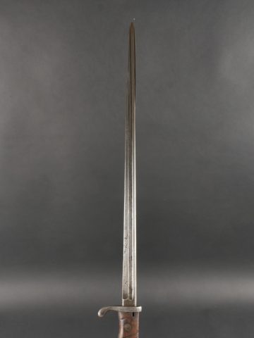 Baïonnette S98 alter Art du JR133 saxon avec fourreau fer. Seitengewehr S98 1er type avec poignée monobloc en bois strié. La lame a été raccourcie, usure, traces d’oxydation. Datée... en savoir plus