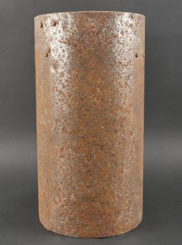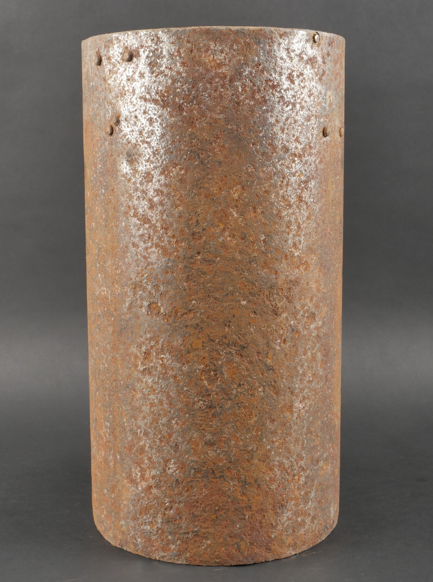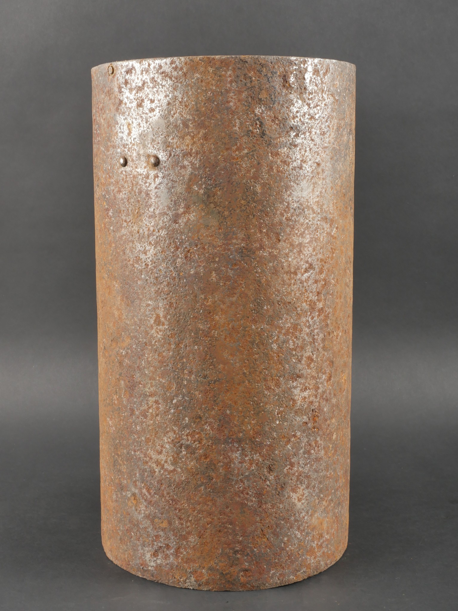 Détails de la vente >Bidon refroidisseur rond Wasserkessel 11 pour mitrailleuse allemande MG08. Rare bidon refroidisseur, de forme cylindrique, traces d’oxydation, nettoyé, non percé. Tous les éléments... en savoir plus