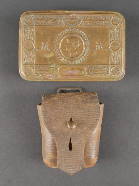 Boîte Princess Mary Christmas 1914 et cartouchière M1903 MkI régimentée.Princess Mary Christmas 1914 Box and Regimentally Marked M1903 MkI Ammunition Pouch