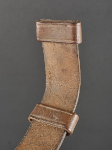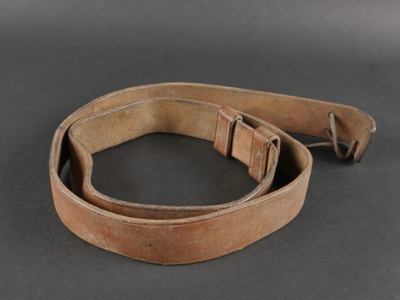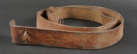 Détails de la vente >Bretelle de fusil canadienne en cuir 1915. Belle bretelle en cuir marron pour le fusil Ross ou le SMLE, bien marquée Hugh Carson Co Ltd Ottawa 1915, avec son passant et son lacet cuir. Bon état.... en savoir plus