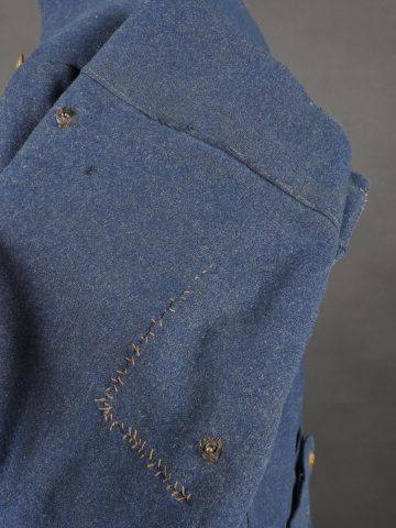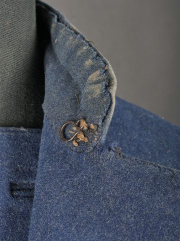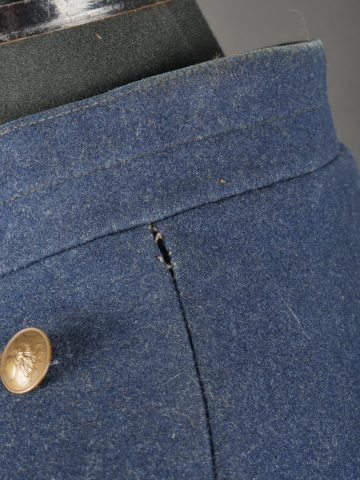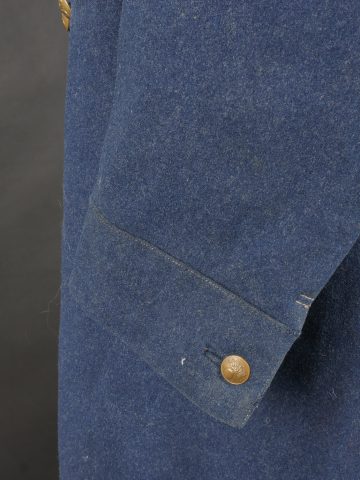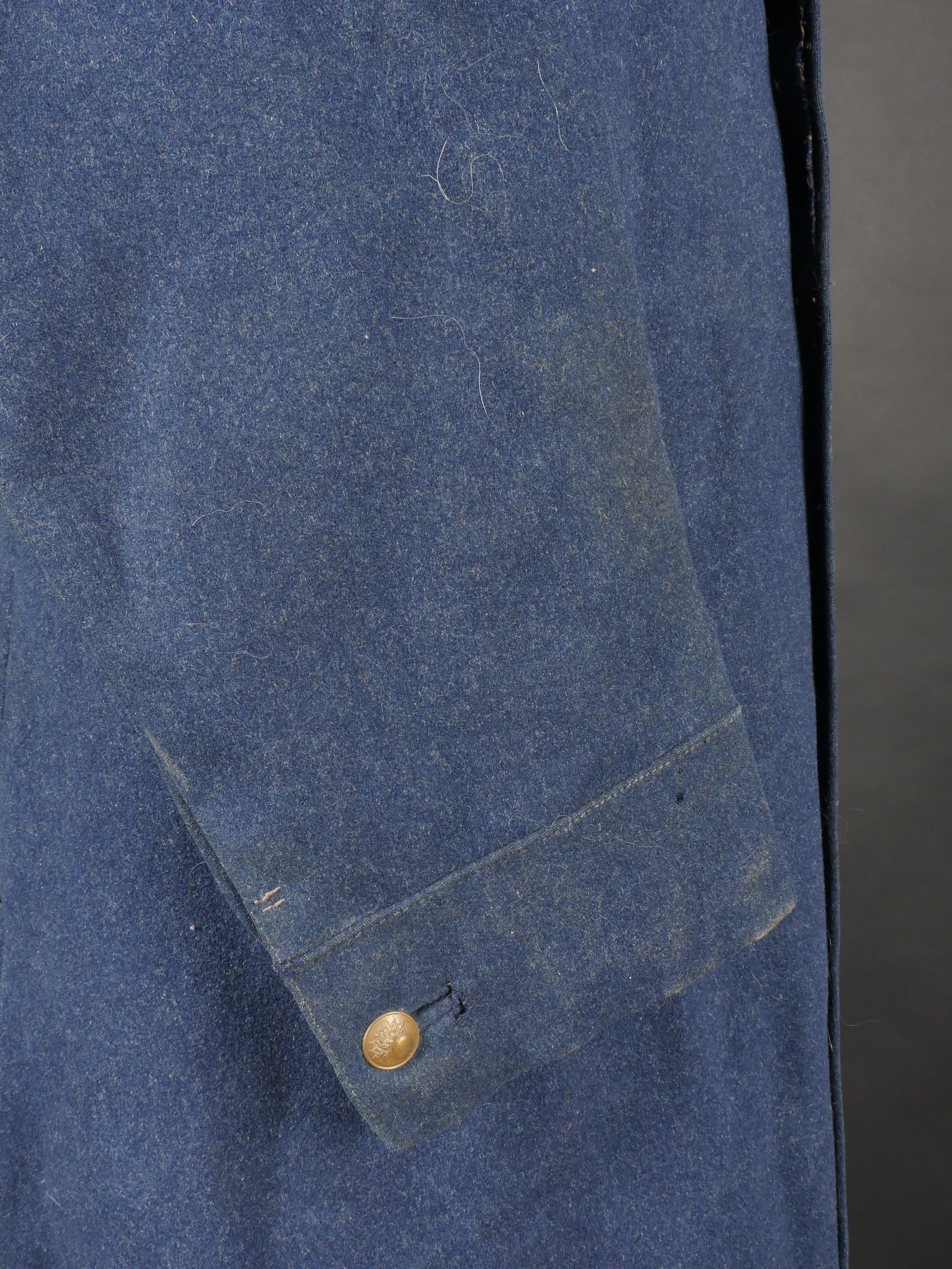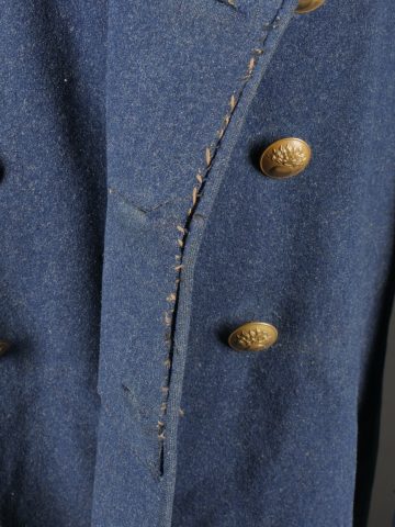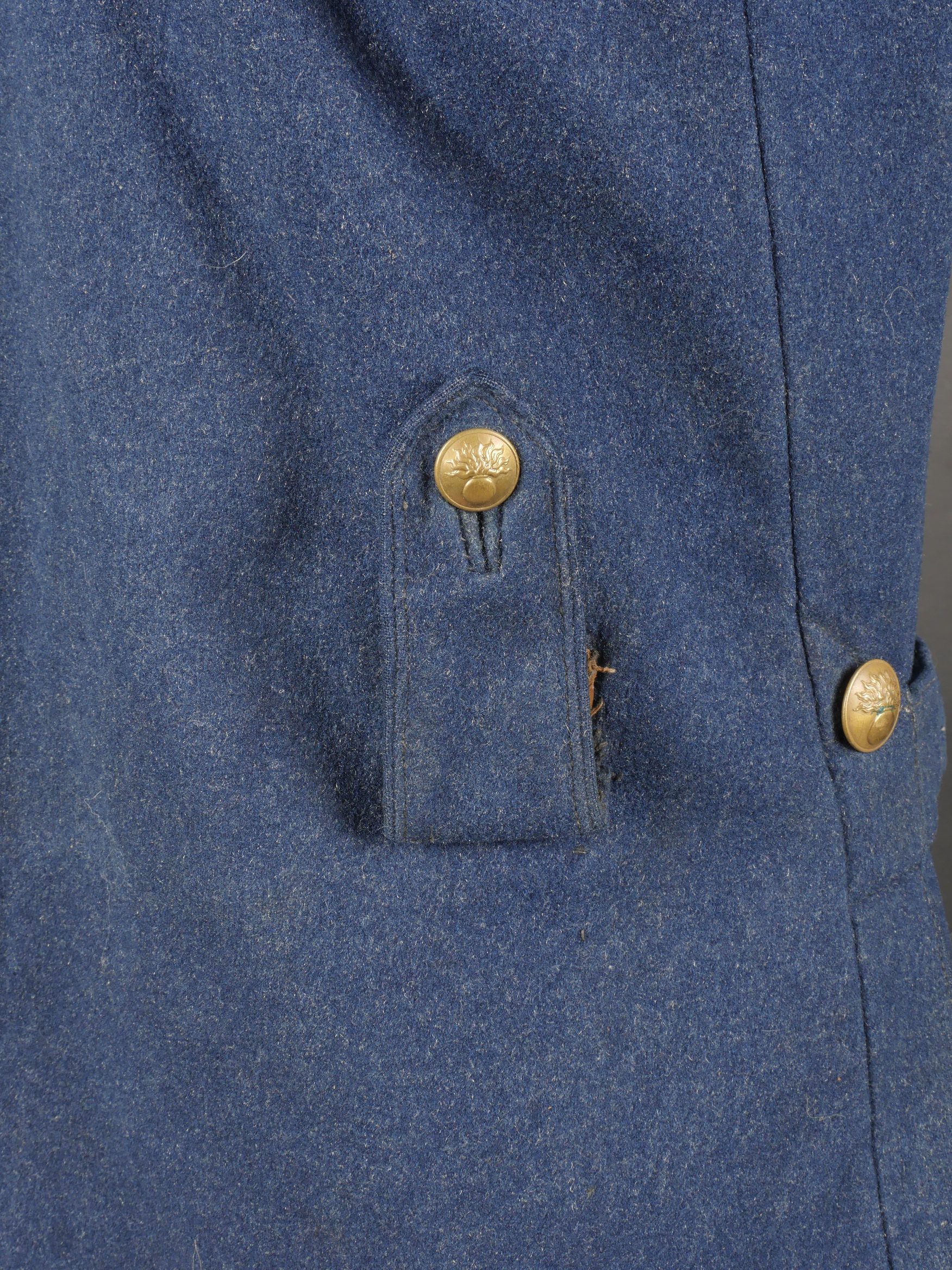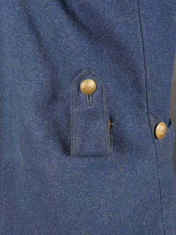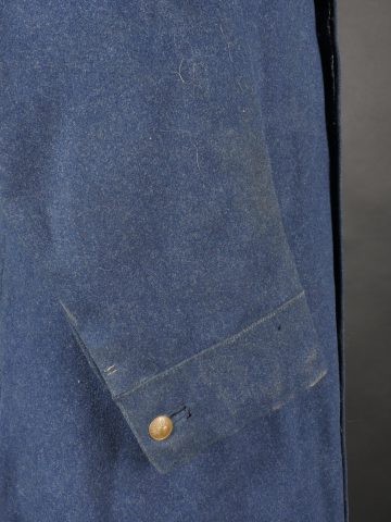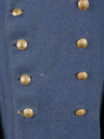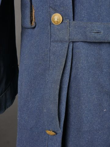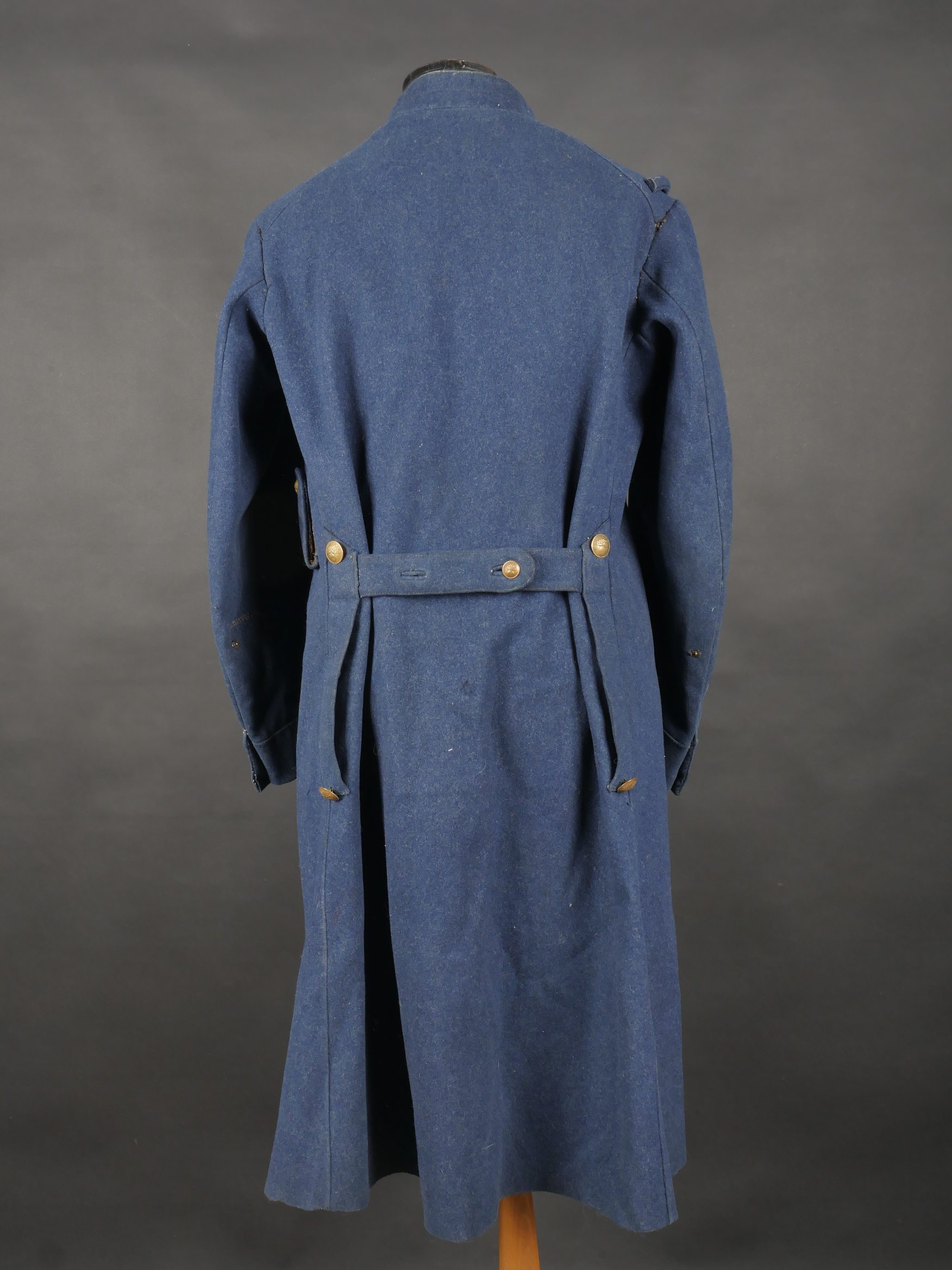 Détails de la vente >Capote française modèle 1877 Gris de Fer bleuté du 106e RI . Capote modèle 1877 en drap épais gris de fer bleuté. Dans sa longueur avec ses boutonnières en bas, passants d’épaule,... en savoir plus