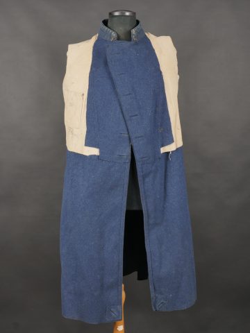 Capote française modèle 1877 Gris de Fer bleuté du 106e RI . Capote modèle 1877 en drap épais gris de fer bleuté. Dans sa longueur avec ses boutonnières en bas, passants d’épaule,... en savoir plus