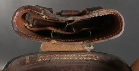 Détails de la vente >Cartouchière allemande 1887-88 du Pionier Bataillon Nr 25 de Nassau. Cartouchière allemande modèle 87/88 pour troupes techniques, artillerie et Pionier, en cuir marron teinté noir pendant la... en savoir plus