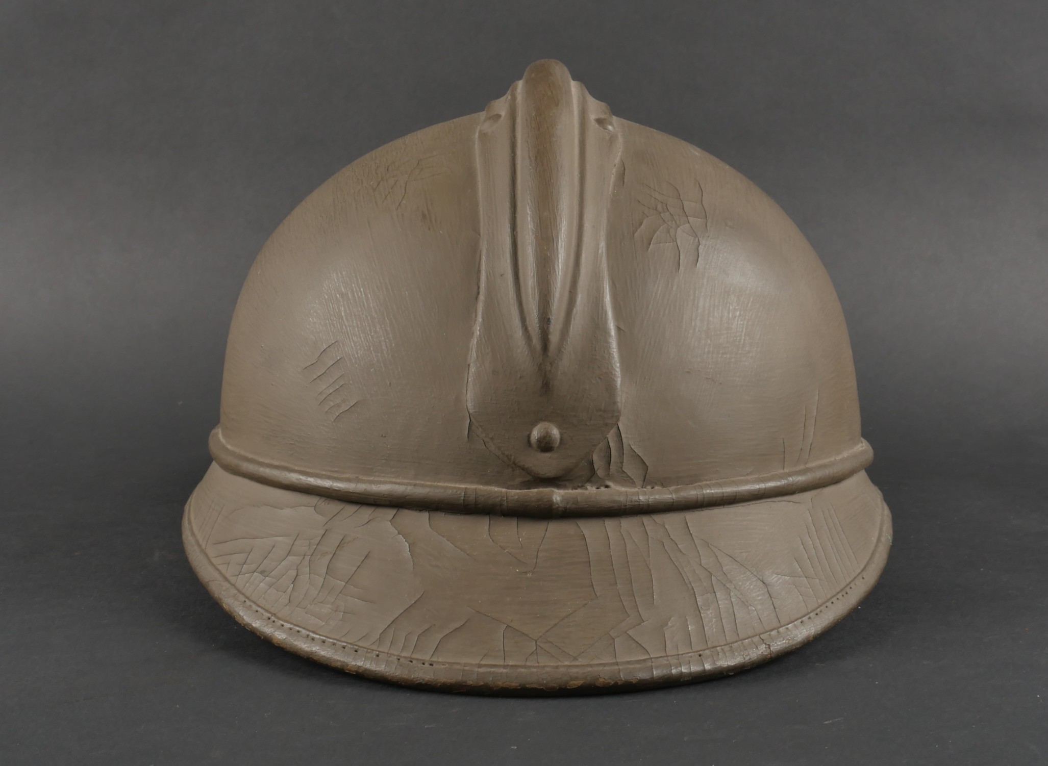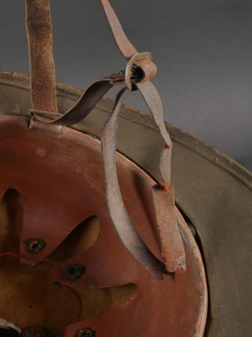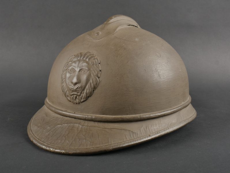 Casque Adrian Belge d’officier en liège. Casque de forme Adrian, réalisé en liège recouvert de toile. L’extérieur et les dessous de visières sont enduit imperméabilisés en... en savoir plus