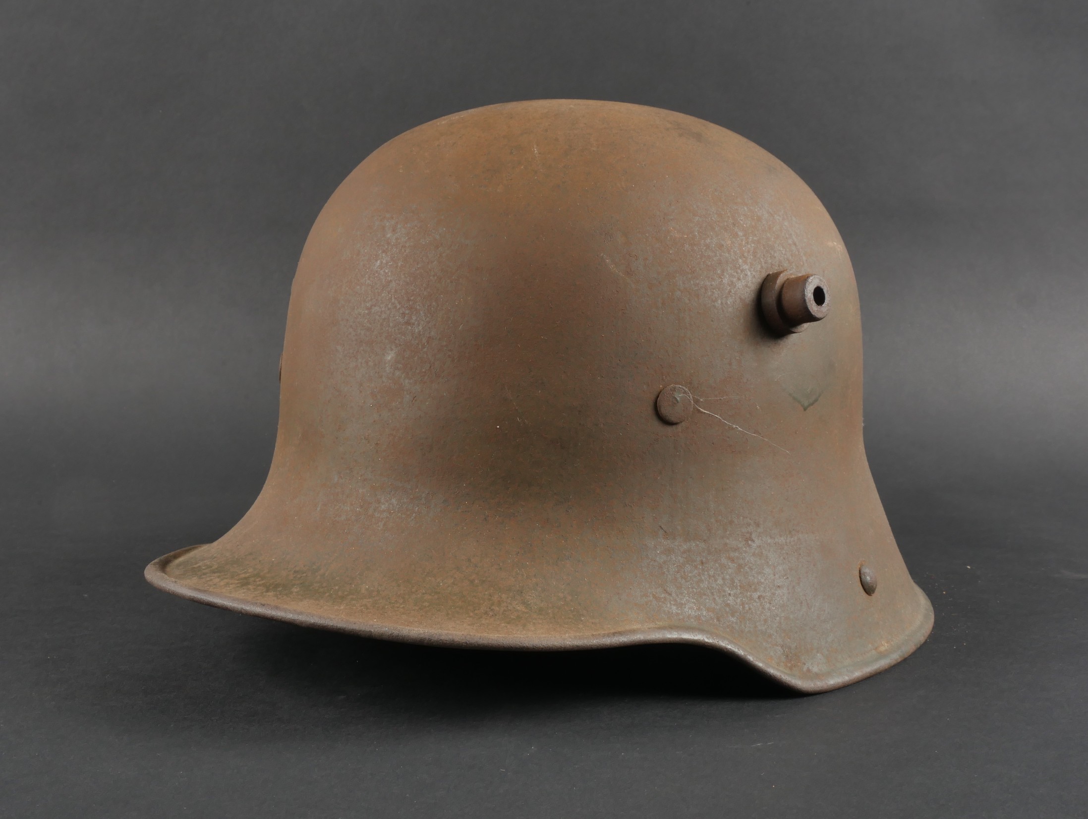 Détails de la vente >Casque allemand Stahlhelm M1916. Casque allemand M16 en acier peint feldgrau, peinture fine, rouille superficielle. Fabricant B.F. pour F.C. Bellinger à Fulda. Taille 62. Bandeau de coiffe en... en savoir plus