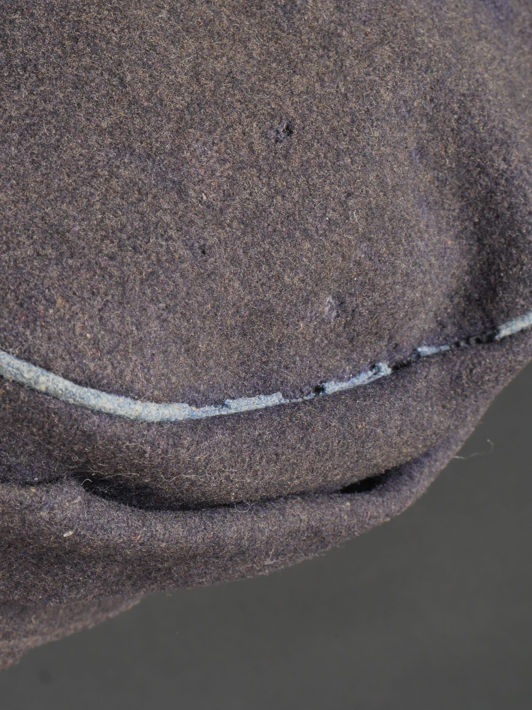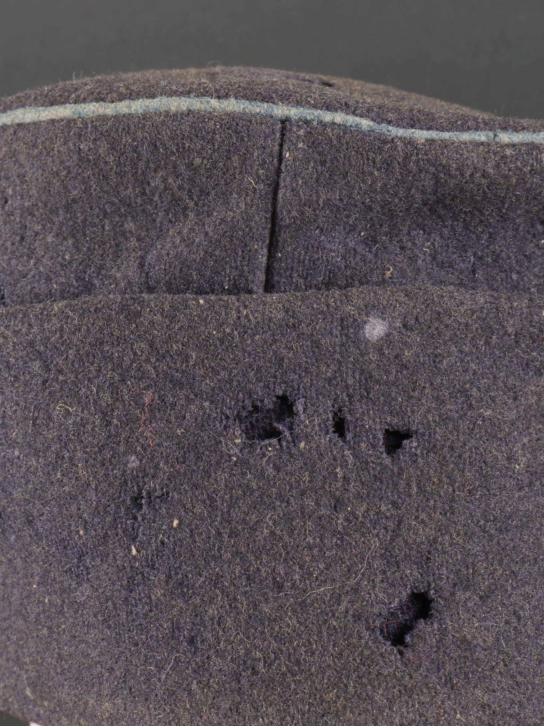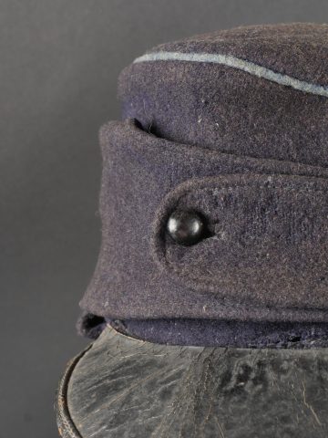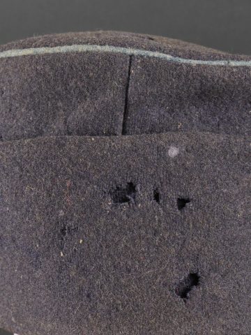 Détails de la vente >Casquette belge dite képi Yser. Rare casquette Yser introduite fin 1914, typique des combats de l’hiver 1914-1915, en drap foncé avec rabat protège nuque. Quelques trous de mites sur... en savoir plus