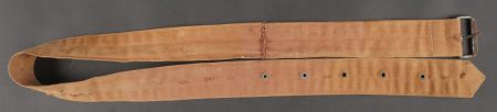 Détails de la vente >Ceinturon et cartouchières français ersatz en toile. Ceinturon en toile cachou, largeur 4,6 cm, boucle en fer à un ardillon. Coupé puis recousu à 24,5 cm de la boucle, invisible si monté... en savoir plus