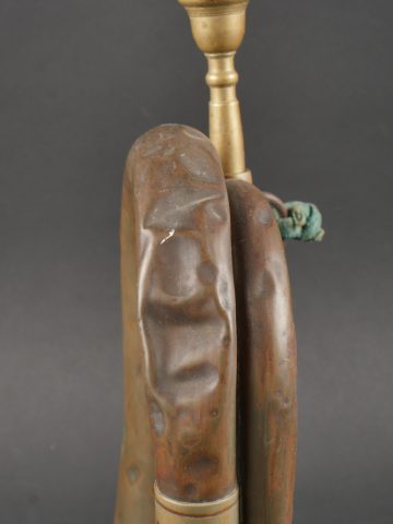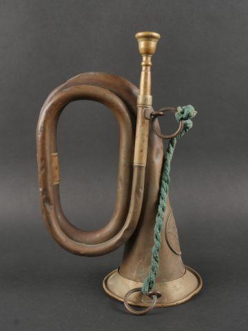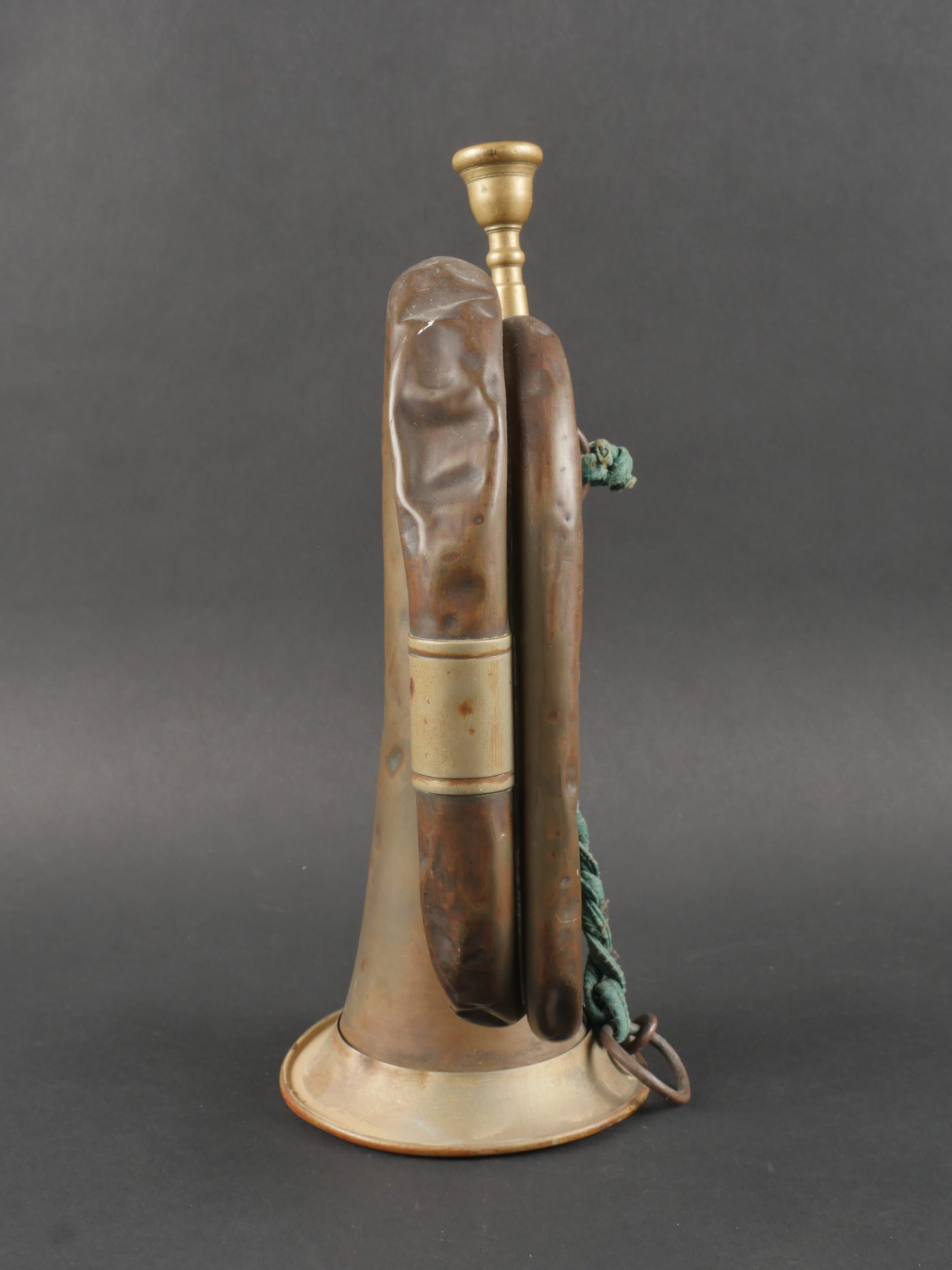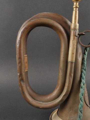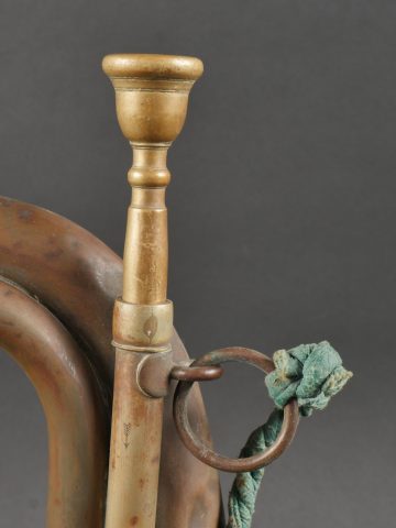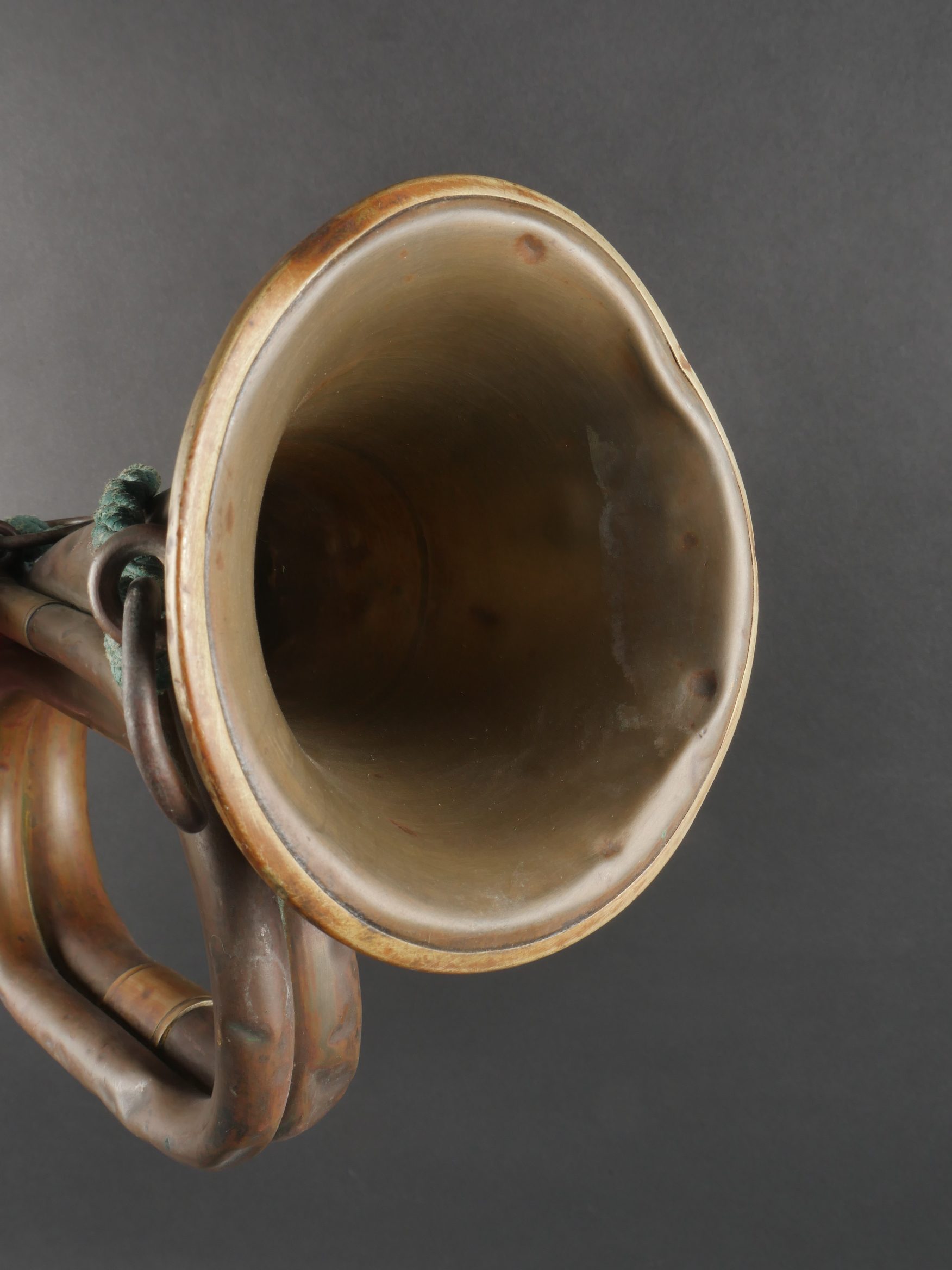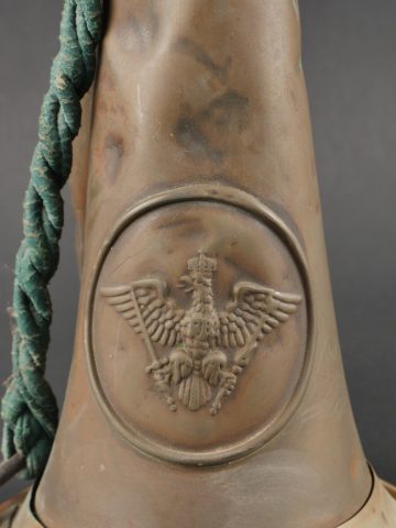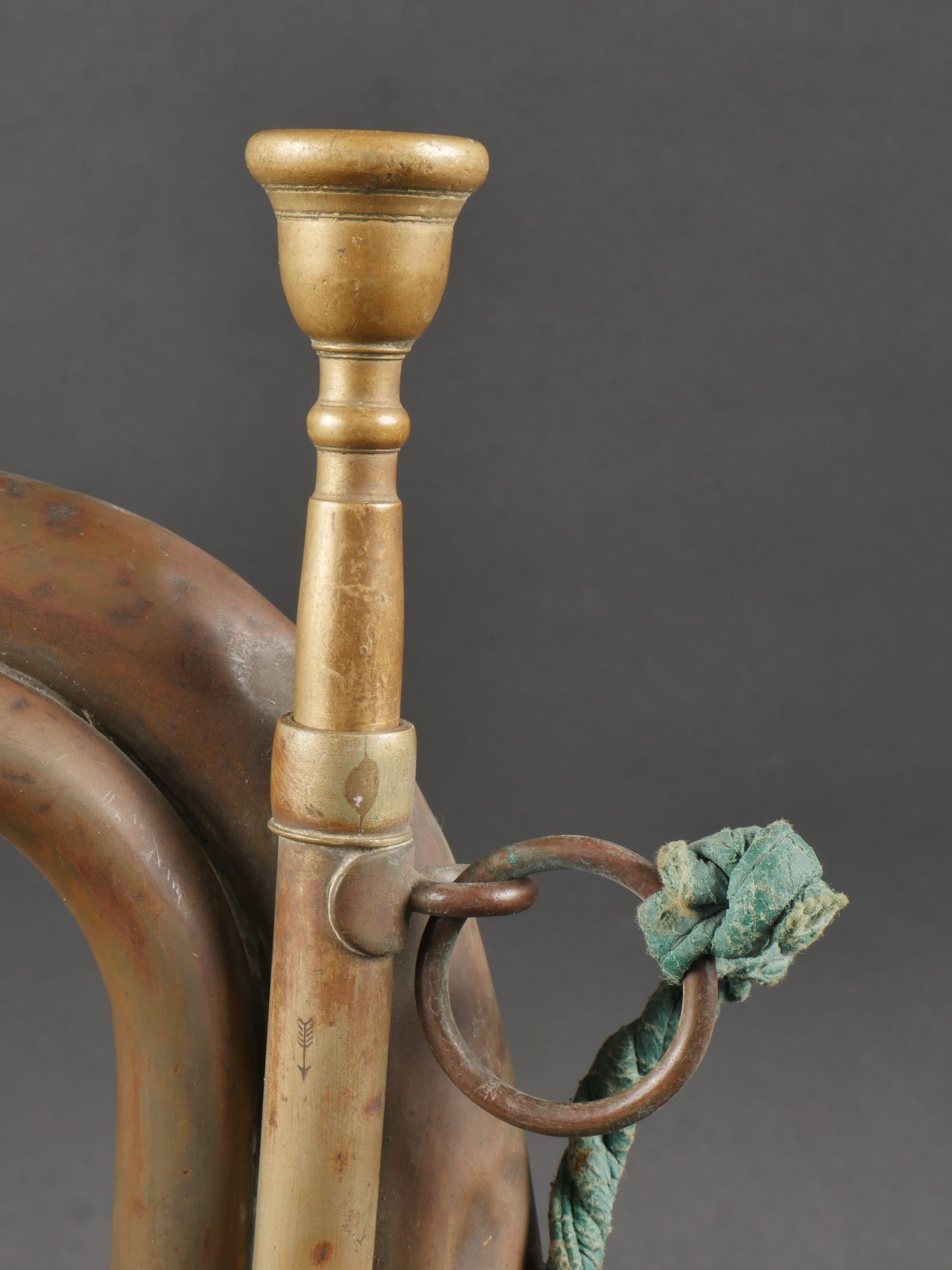 Détails de la vente >Clairon prussien Signalhorn. En laiton, parfois appelé Bugle, ce Signalhorn en laiton, avec macaron avec l’aigle prussien estampé. Renfort de cornet en maillechort. Avec ses anneaux et son... en savoir plus