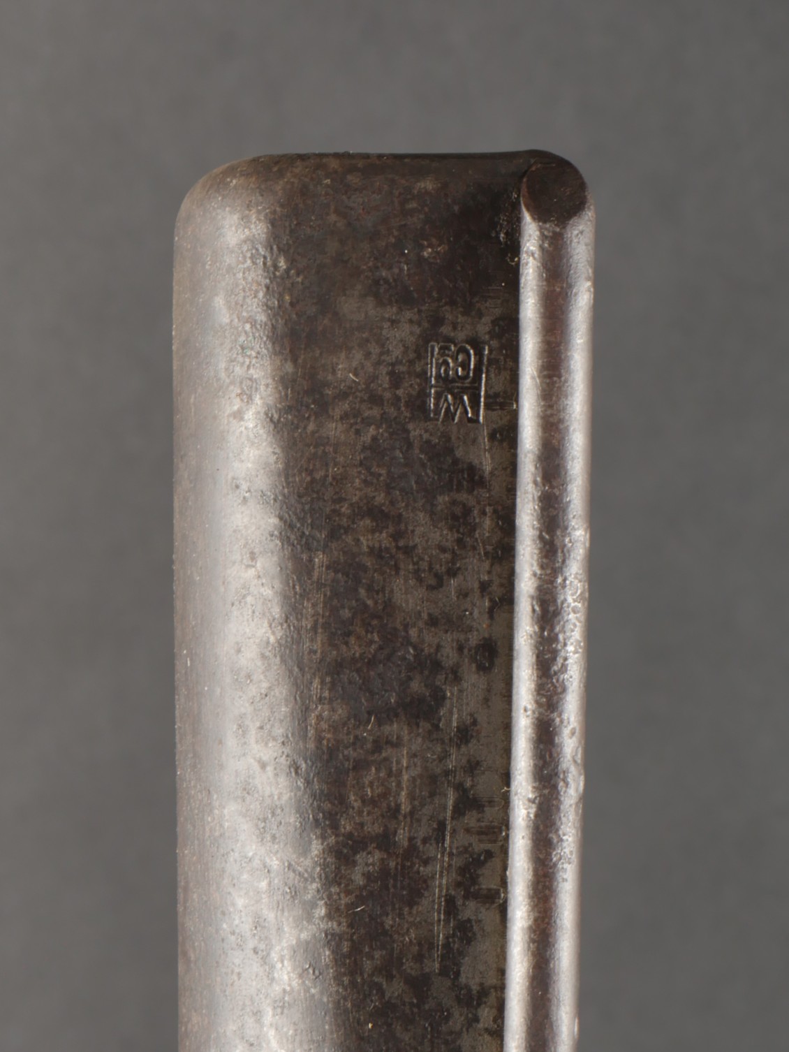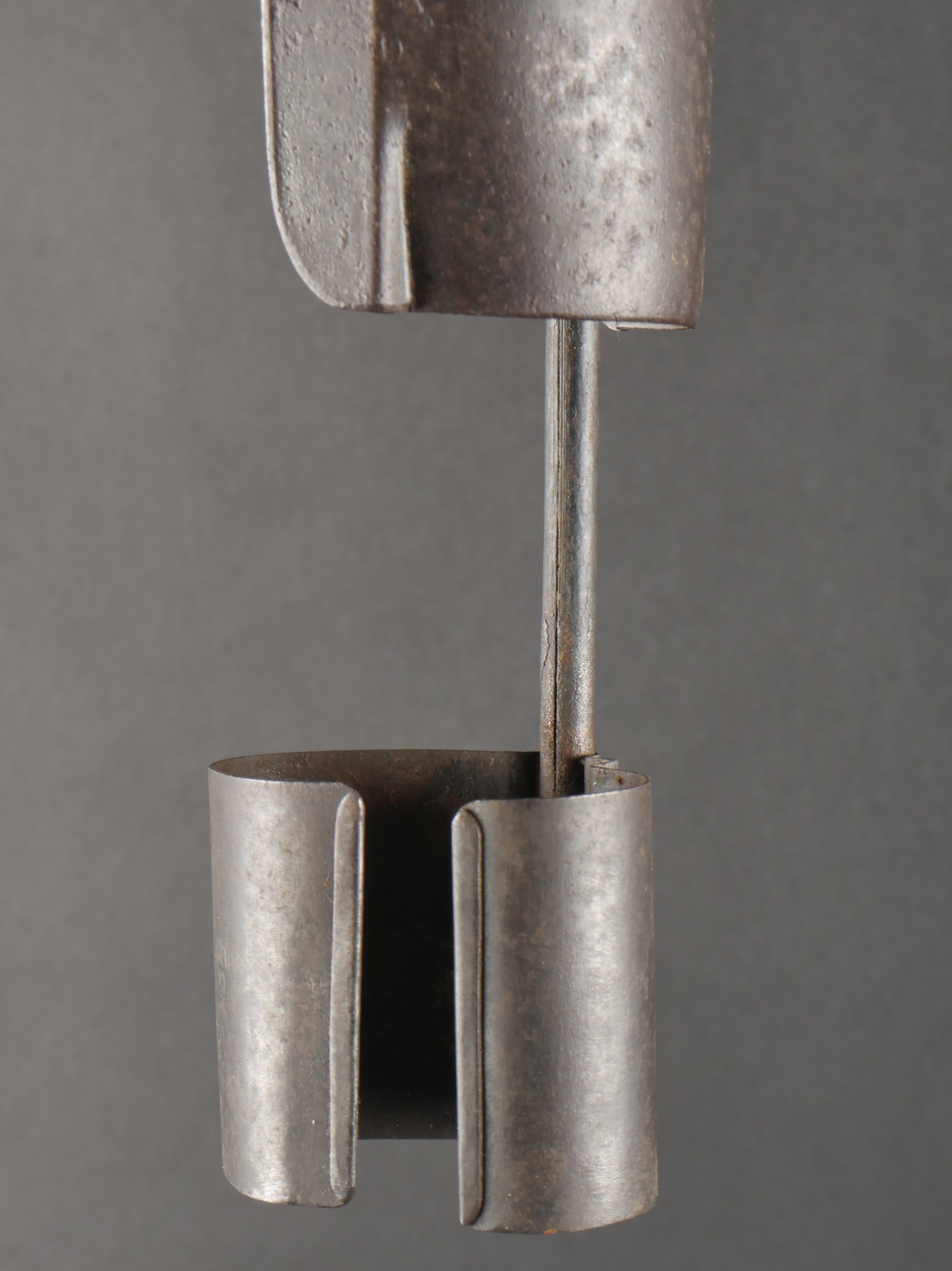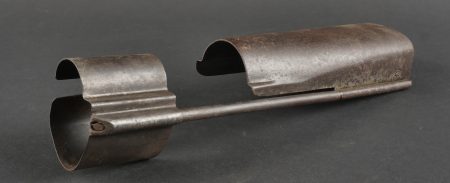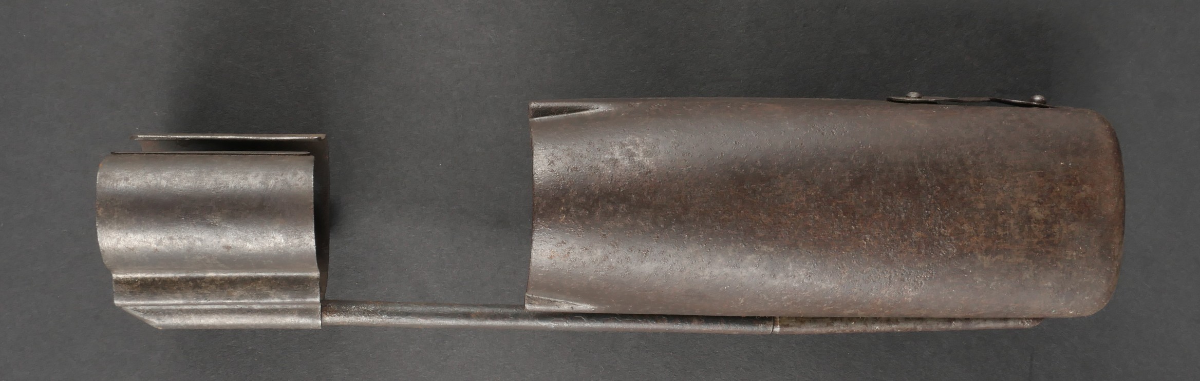 Couvre culasse de Gewehr 98. Dispositif de protection de la culasse du fusil allemand Gewehr M1898. Appelé Staubschutzdeckel, en tôle, marqué W Co DRP sur la partie avant, et W Co sur la partie arrière. Fonctionnel. Usure d’usage et patine. Bolt Cover for Gewehr 98 Protective cover for the bolt of the German Gewehr M1898 rifle, known as Staubschutzdeckel. Made of sheet metal, marked “W Co DRP” on the front and “W Co” on the rear. Functional. Signs of use and patina.