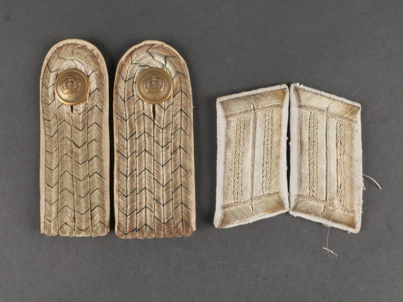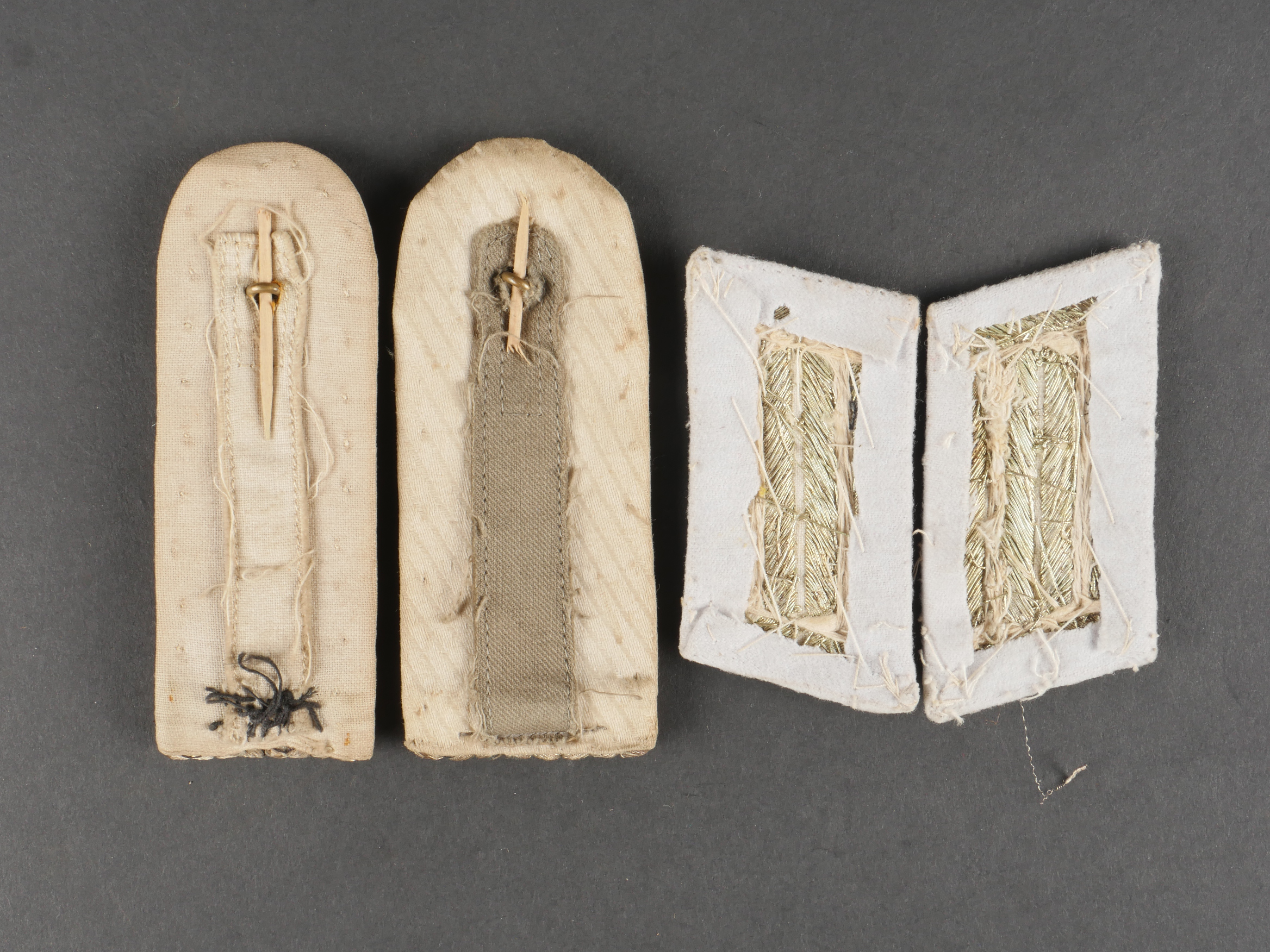 Détails de la vente >Ensemble pattes d’épaules et de col d’officier d’infanterie. Une paire de pattes d’épaule modèle 1915 d’officier d’infanterie prussien avec boutons en... en savoir plus