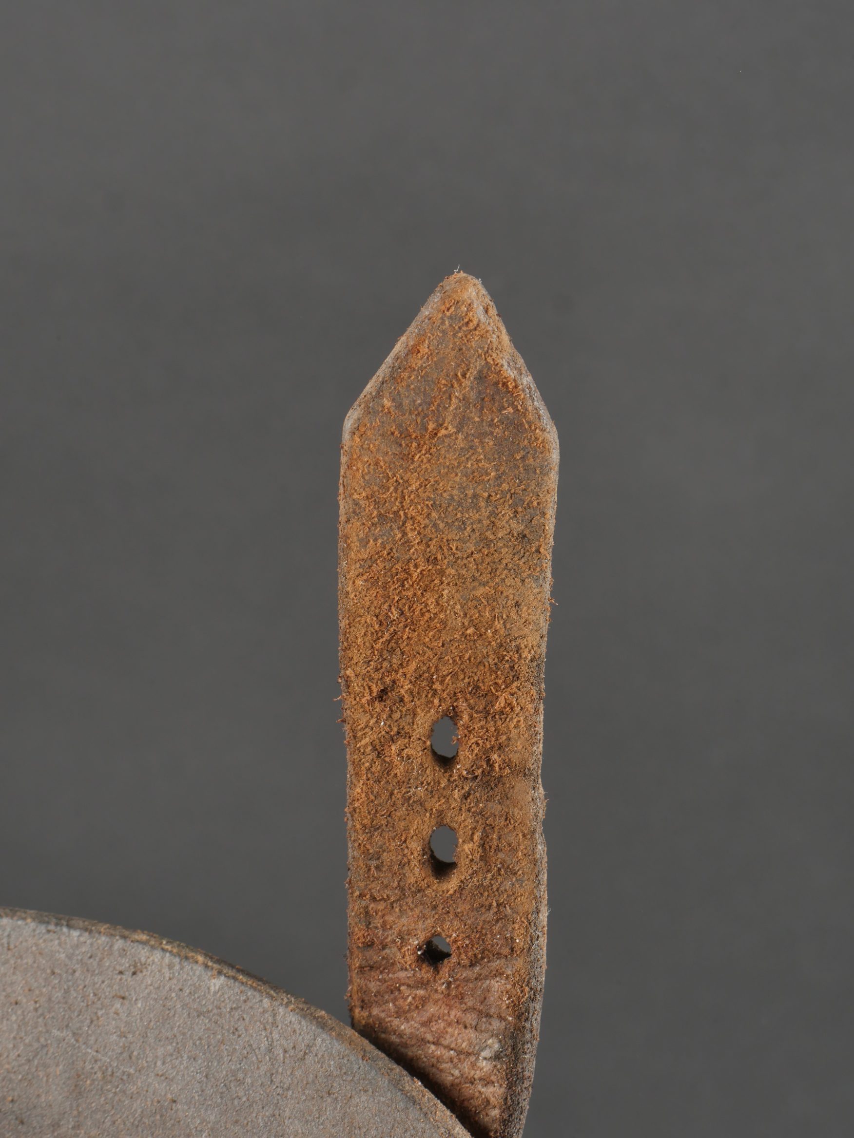 Etui de Luger P08 daté 1912. En cuir marron, complet de sa sangle de fermeture, de sa sangle d’extraction, de son compartiment interne et de ses passants de ceinturon. Marquage fabricant Leckart de Ulm et daté 1912. Tampon de réception au BA XIII en 1912, le magasin du corps d’armée du Württemberg. Marquage d’unité illisible. Etat correct. Luger P08 Holster, Dated 1912 Brown leather holster complete with closing strap, pull strap, internal compartment, and belt loops. Maker marked Leckart, Ulm, and dated 1912. Army Corps of Württemberg acceptance stamp BA XIII 1912, unit marking illegible. Fair condition.