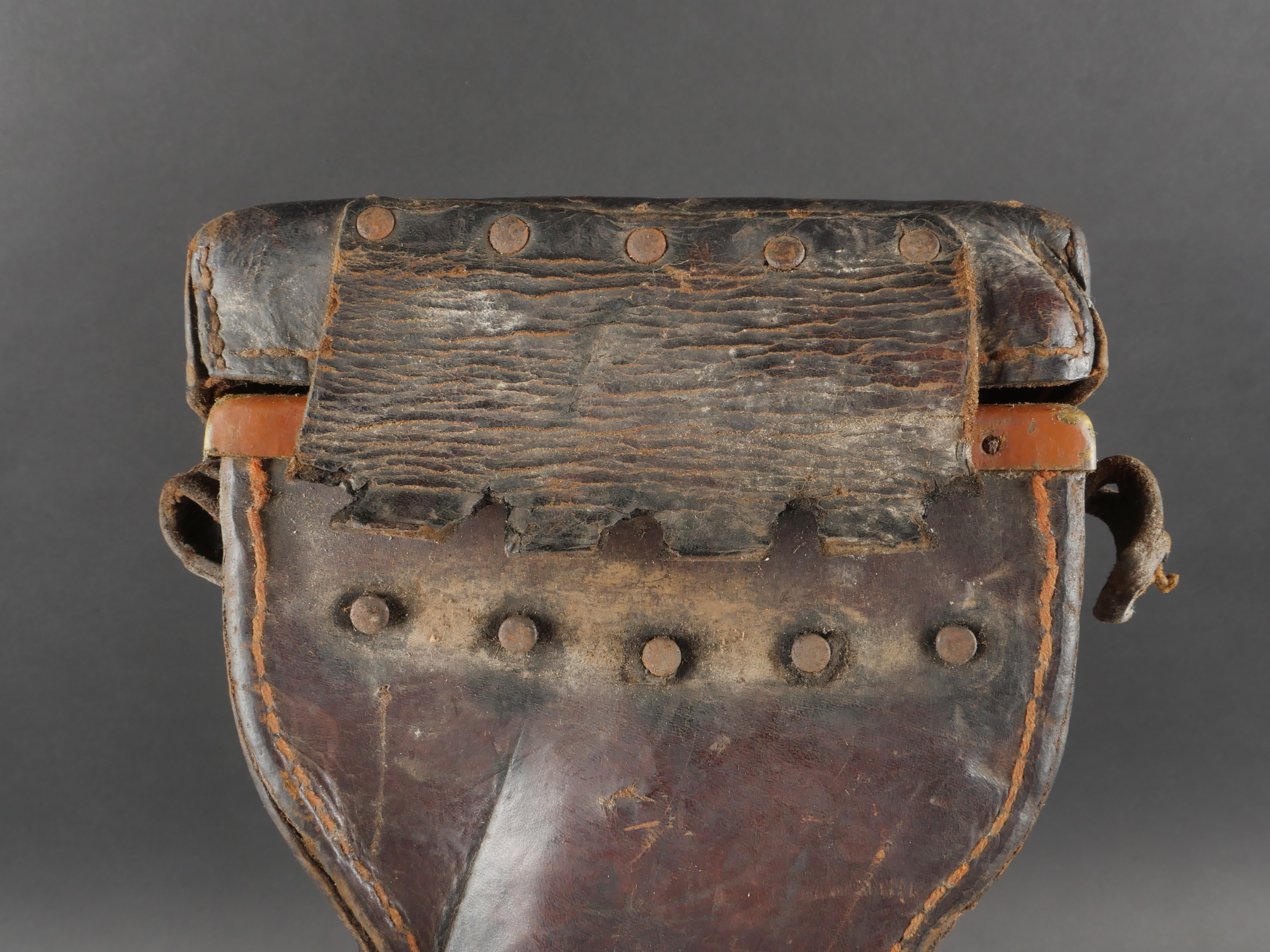 Détails de la vente >Etui de lunette de visée ZF12 pour mitrailleuse allemande MG08 et cartouchière ersatz 1914. Etui cuir destiné à recevoir la lunette ZF12 de MG08. Fabricant Emil Busch A.G. Rathenow. Pattes de... en savoir plus